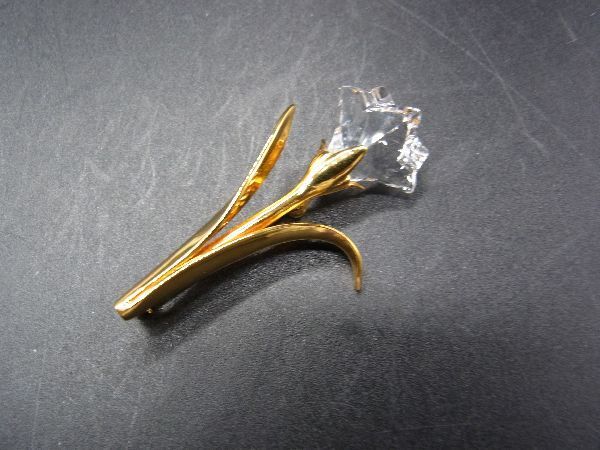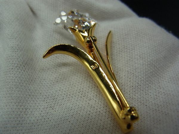 ■美品■ SWAROVSKI スワロフスキー クリスタル フラワー ブローチ ピンバッジ アクセサリー レディース ゴールド系×クリア DE2404