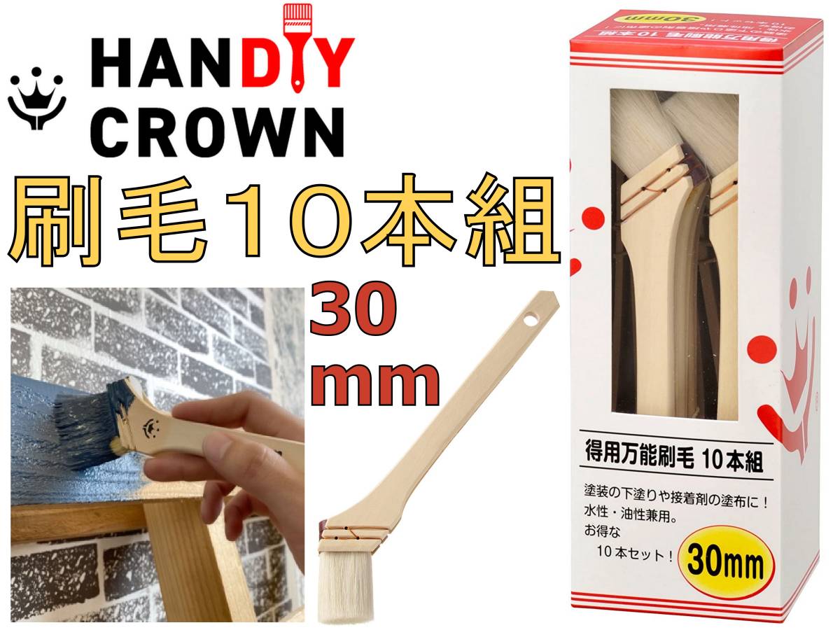 送料¥185 刷毛 30mm 10本組 ハンディ クラウン 多用途用 万能 刷毛 化繊 山羊毛 水性 油性 塗料 兼用 はけ 塗装 内装 外装 下地 ニス 塗布