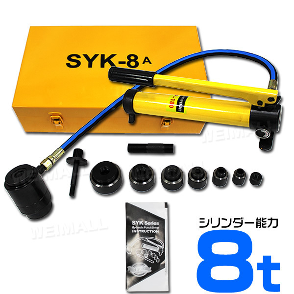 | 電気工事で大活躍!! ステンレスや鉄板に簡単に穴があけれます。油圧パンチャー 手動式、移動や保管に大変うれしいケース付きです! |