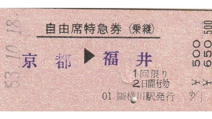 T097.東海道本線 京都⇒福井 53.10.18【0016】山陽本線:横川駅発行