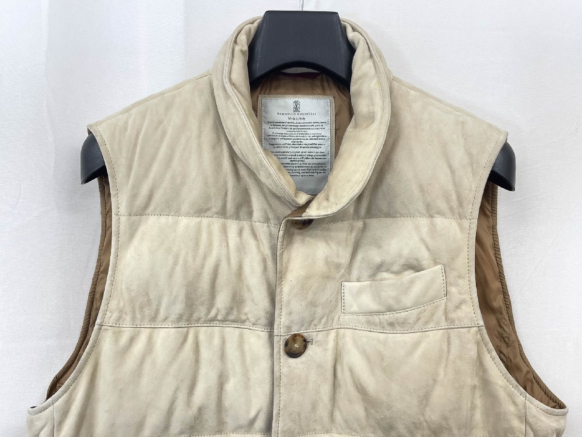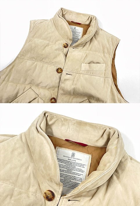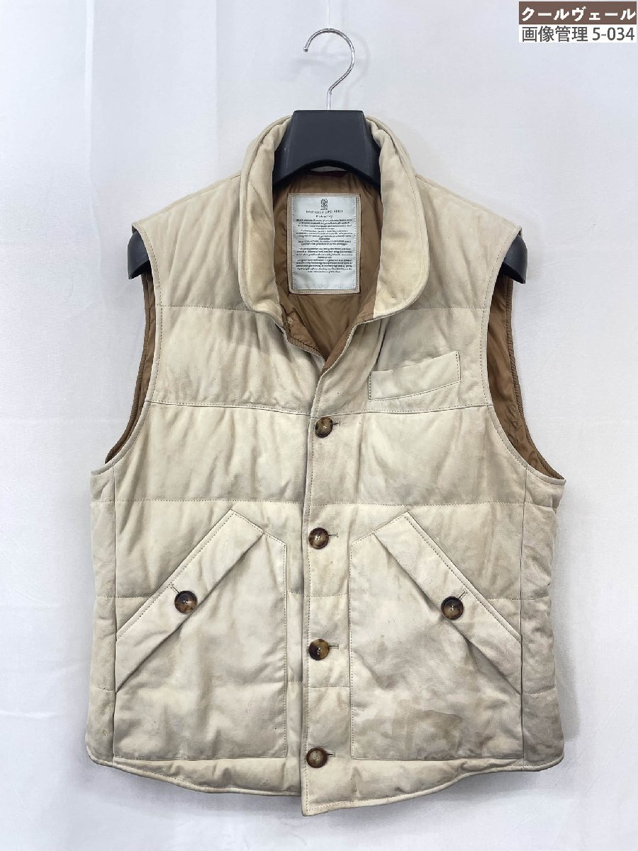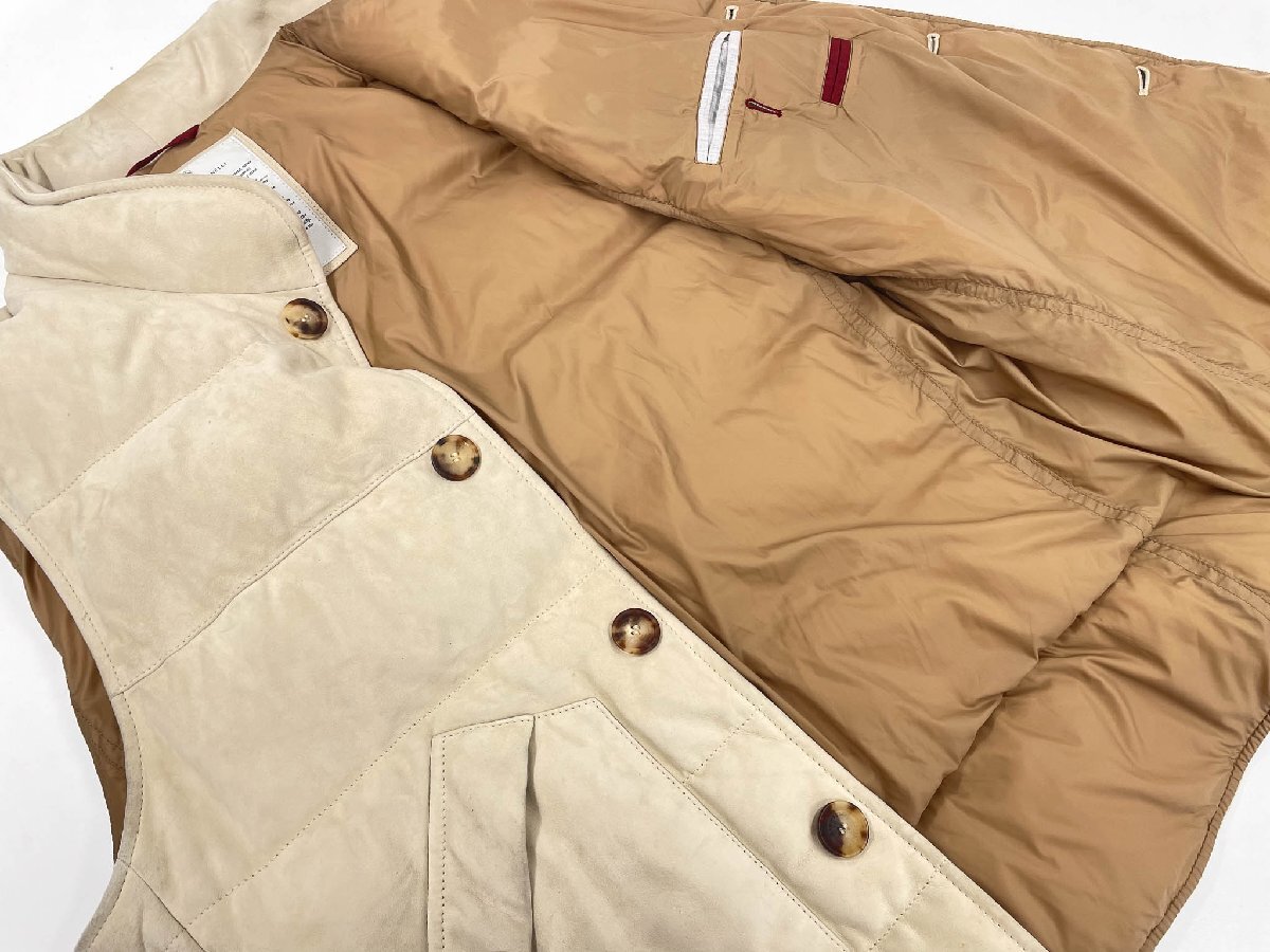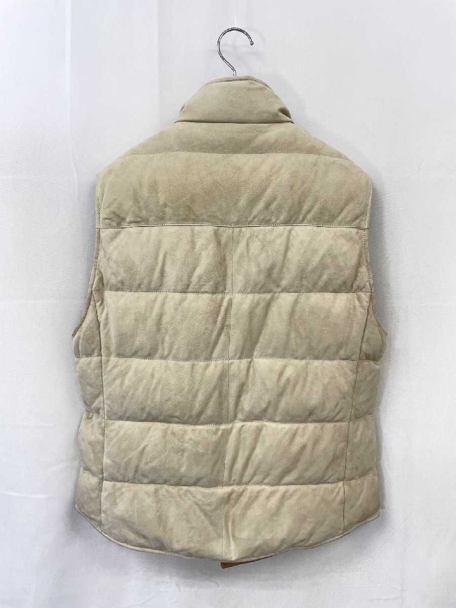 【ブルネロクチネリ BRUNELLO CUCINELLI】M0PCL1213 スタンドカラー スエードレザー ダウンベスト ジレ(メンズ)M 茶系 伊製 ◇17MB5080◇