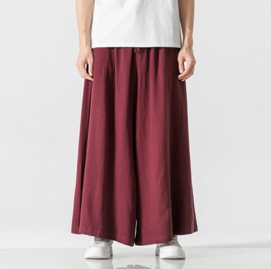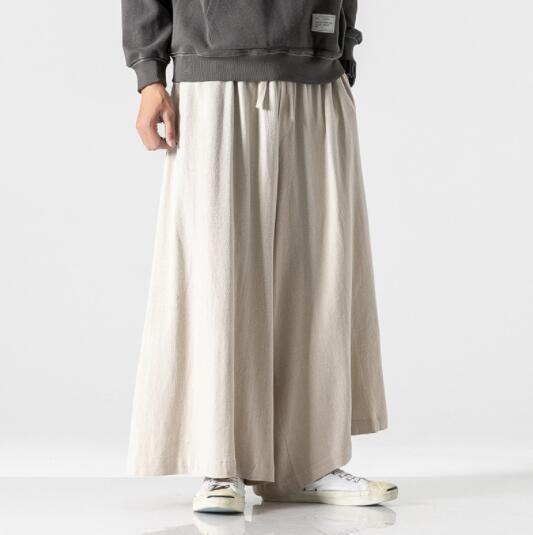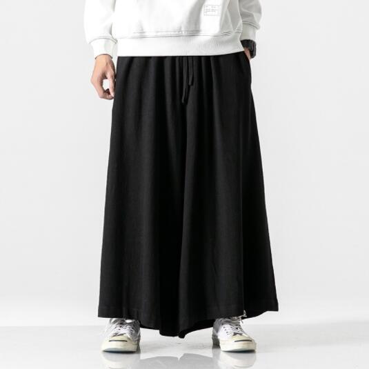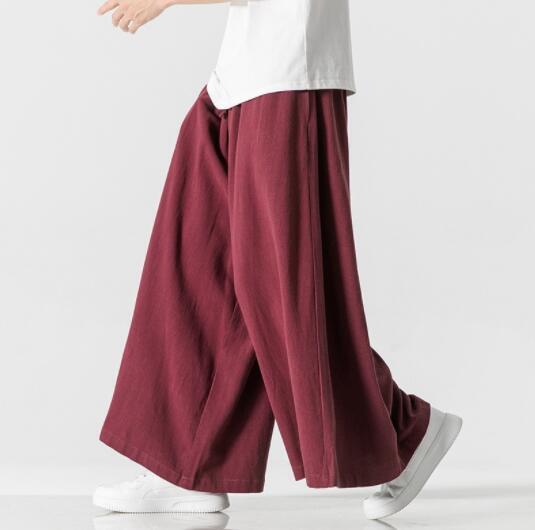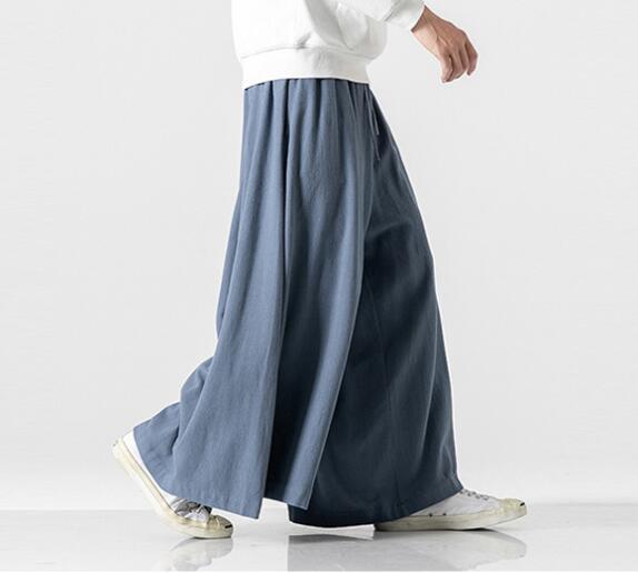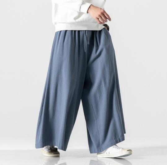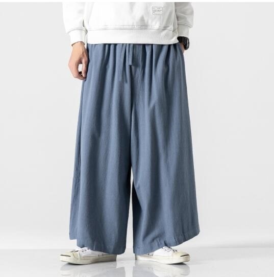 新作リネン パンツ メンズ ワイドパンツ バギーパンツ 綿 麻 麻パンツ イージーパンツ 無地パンツ ボトムス 袴パンツブルーXL