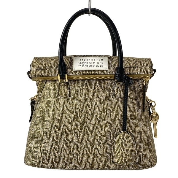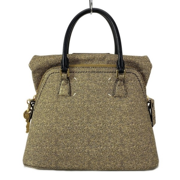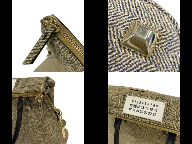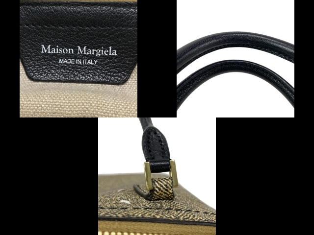 メゾンマルジェラ Maison Margiela ハンドバッグ SB3WG0047 5AC ミニ レザー ベージュ×ゴールド×黒 美品 バッグ