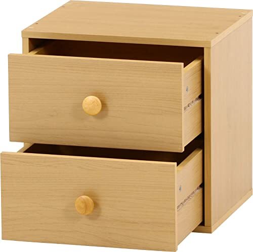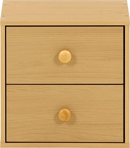 不二貿易 キューブボックス 引出し2杯 幅34.5×奥行31.5×高さ34.5cm ナチュラル 収納 組み合わせ自由 99895