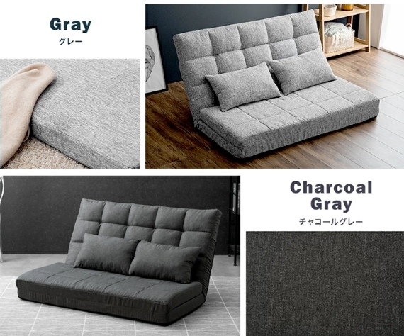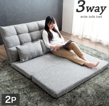 チャコールグレー 3way 超ワイド ソファーベッド 14段階リクライニング 2人掛け コンパクト ゆったり 大きめ 幅130cm ハイバック