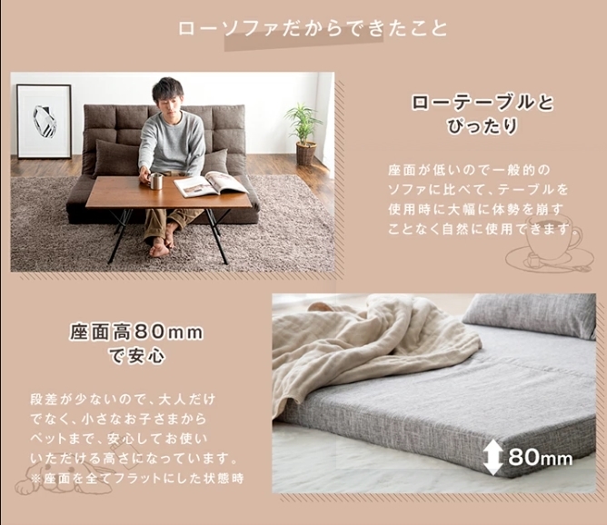 ソファ時:幅130×奥行60×高さ68cm