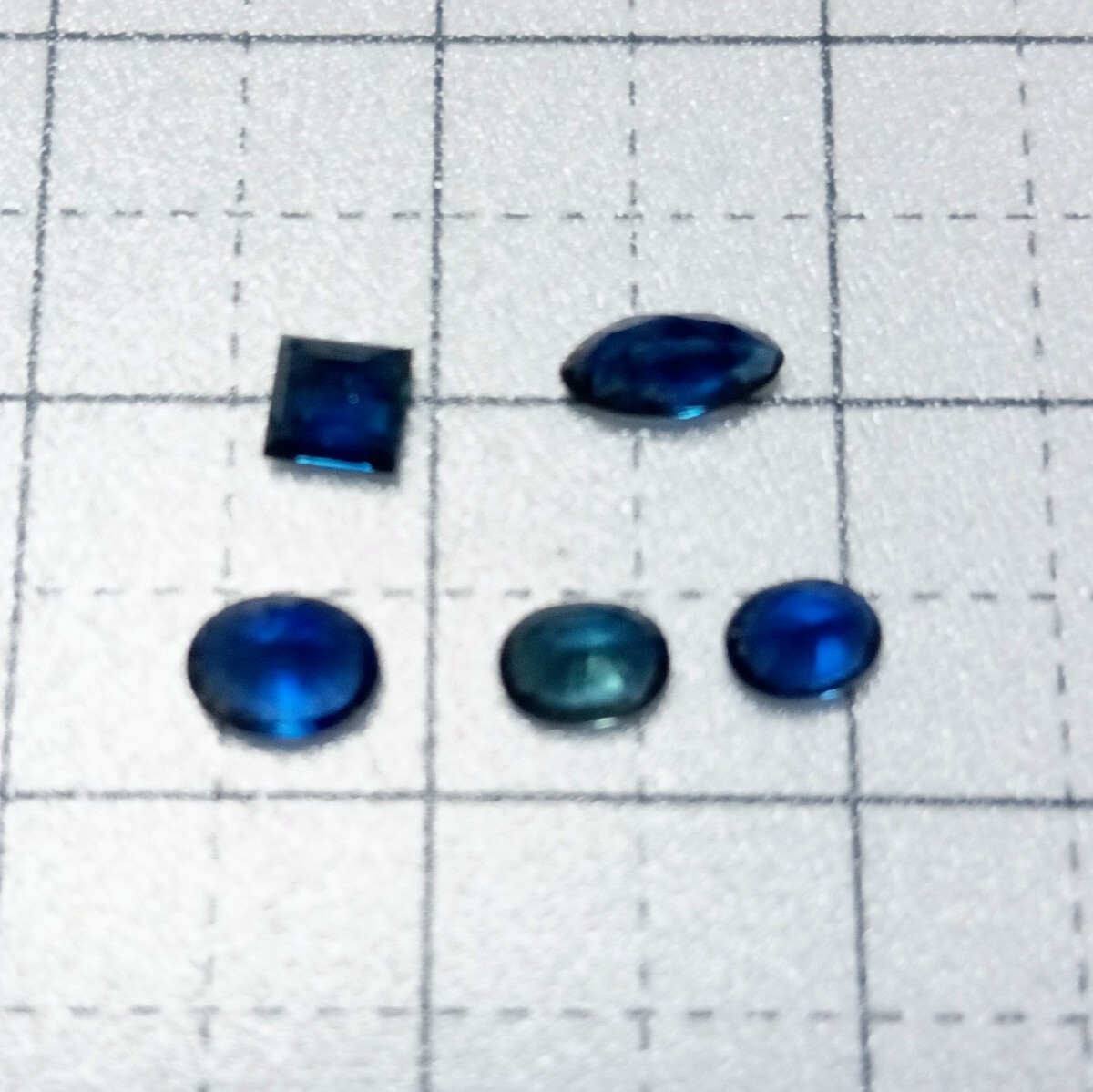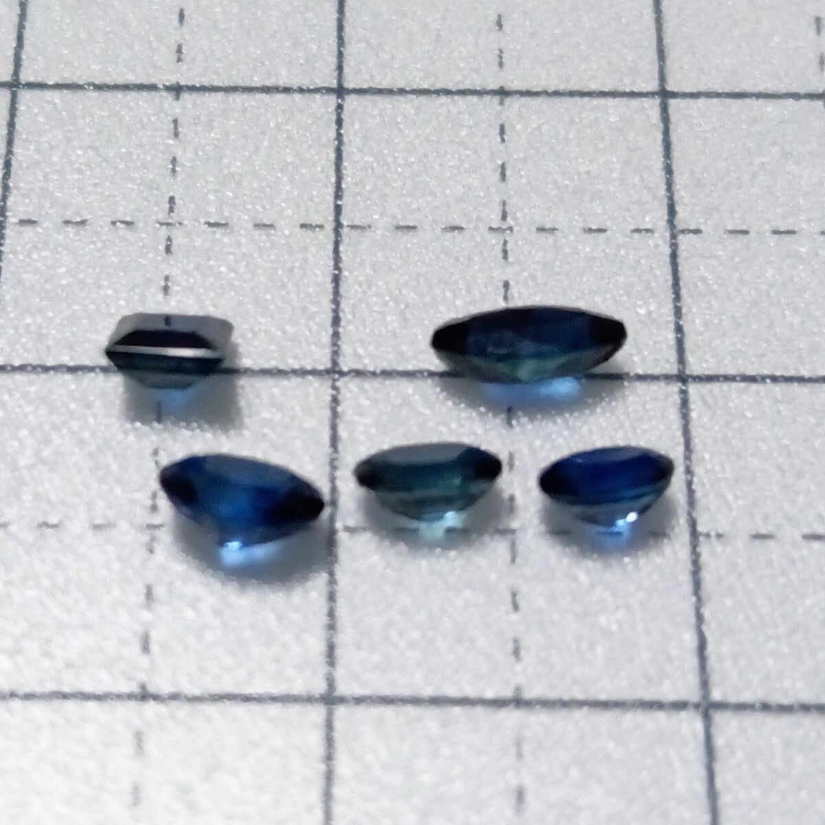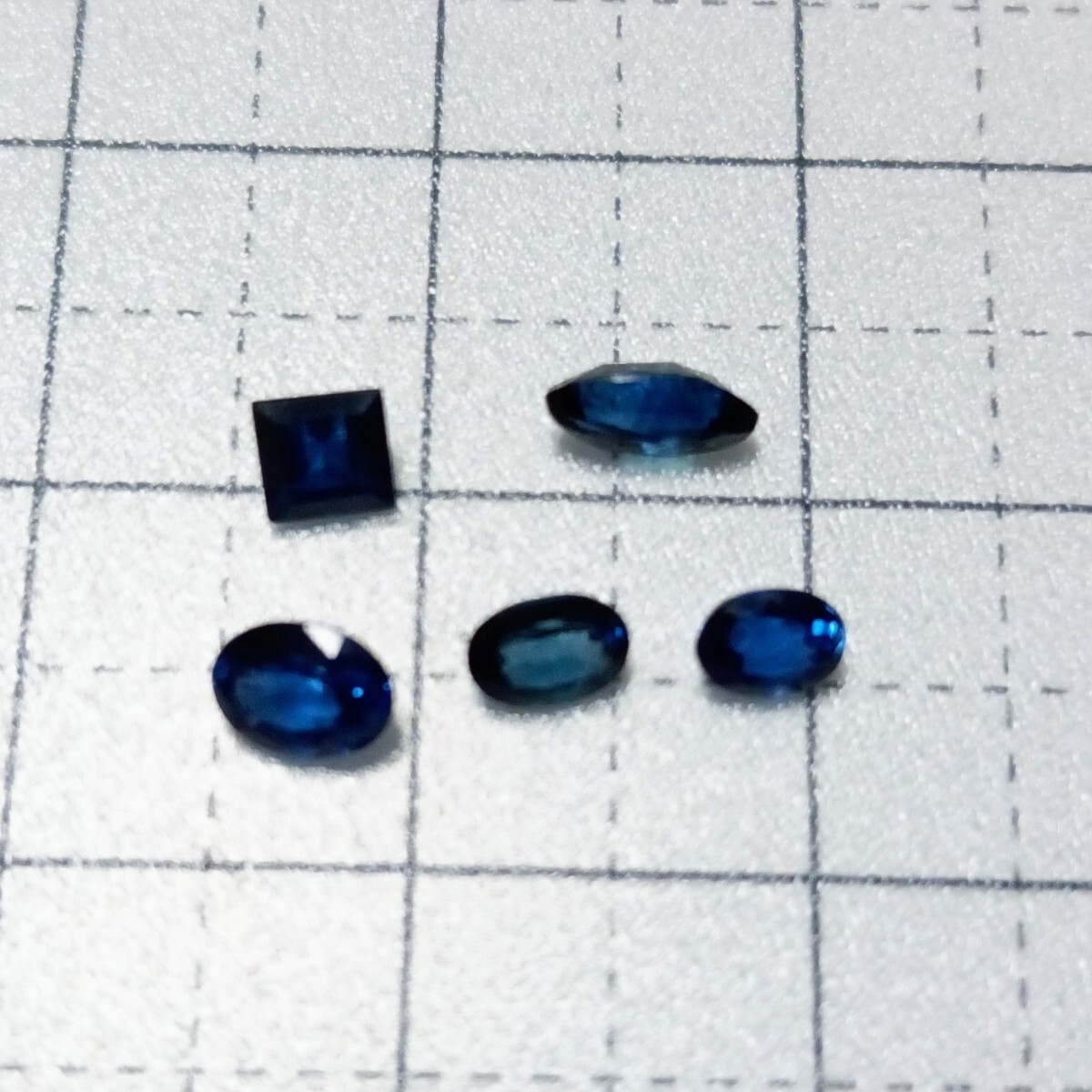 きれいなブルーカラー、オーバル、スクウェア、マーキスカットのブルーサファイアルース5点セットです。