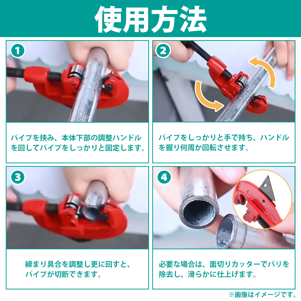※切断後のパイプのバリで手などを切らないよう、十分注意の上でご使用ください。