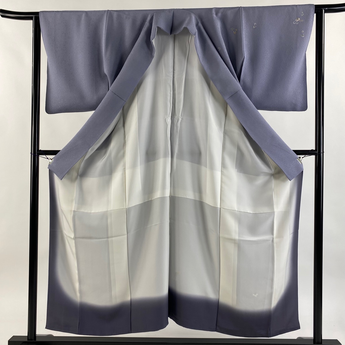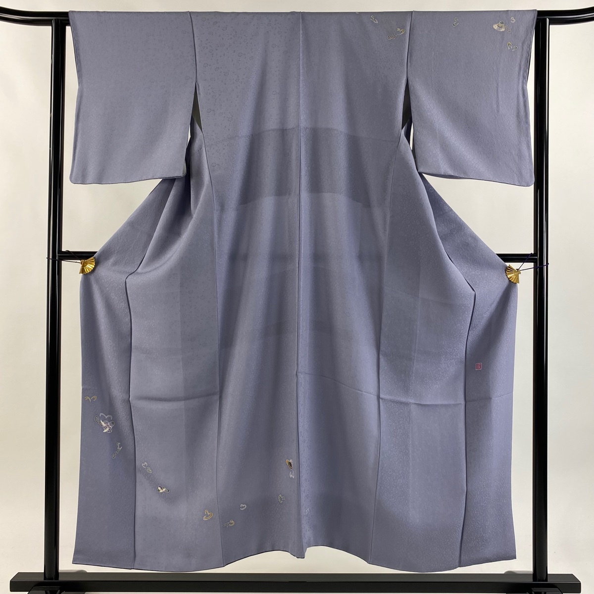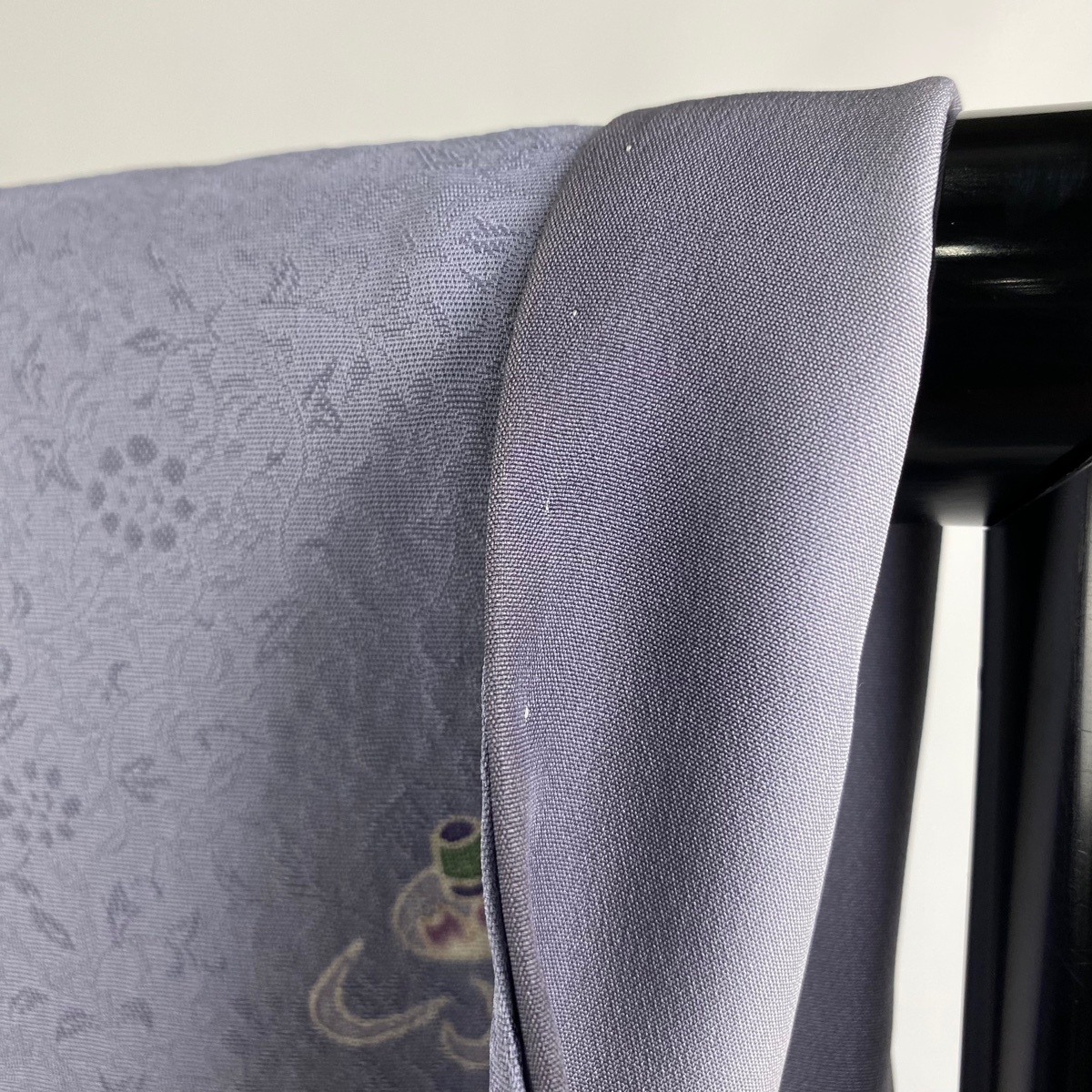| 付下げ 逸品 落款 中谷文彦 加賀友禅 帽子 地紋 青紫 袷 身丈153 裄丈63 S 正絹 【中古】 |