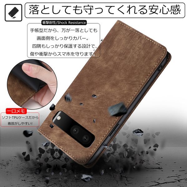 | 商品名 | GooglePixel 7a 用 スマホケース 新品 手帳型 レザー 耐衝撃 ピクセル カード収納 携帯ケース TPU 無地 ブラウン |