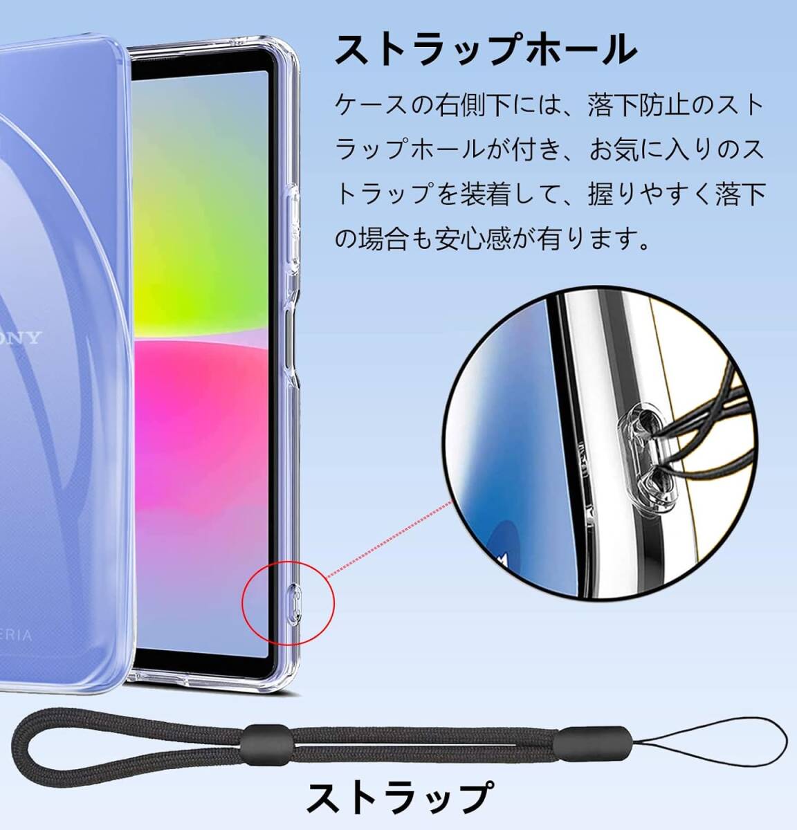 sony Xperia 10 IV クリア ソフトカバー ストラップ付 透明TPU レンズ保護 薄型 耐衝撃 黄変防止 落下防止 安心保護 軽量