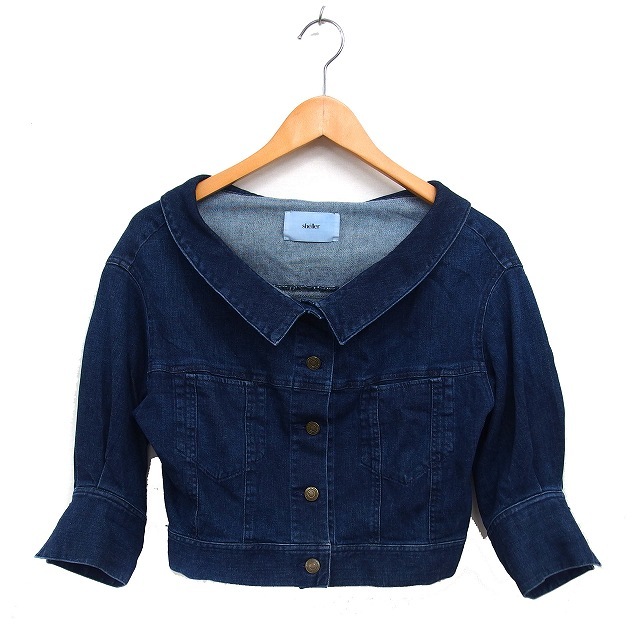 シェリエ sh?ller デニム ジージャン Gジャン クロップド ワイド コットン 綿 七分袖 F 紺 ネイビー /NT22 レディース