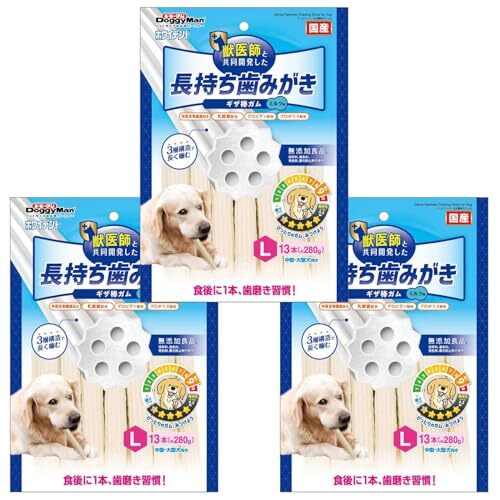 プレーン Lサイズ-/-/9002088903007・Style:プレーン Lサイズ・●犬ちゃんの歯の構造、噛み方を熟知した獣医師と共同開発したオリジナル3層構造の長く噛み続けて食べる長持ち歯みがきガム。・●コラーゲンを含む牛皮を主原料にハードに仕上げたガムスナック。ほんのり甘いミルクの香りと味が食欲をそそる。保存料・着色料・発色剤・酸化防止剤不使用。・●表面のギザギザ層が歯をカチッと固定し、ブラシホール層に歯が入り込み歯垢を除去、しっかり長く噛ませるチューイング層のオリジナル3層構造。・●3つのブラッシング層を長く噛むことで歯垢を拭き取り口臭を防ぐ。・●歯垢を絡めとる特殊食物繊維、歯周の健康を維持するグロビゲン、乳酸菌、プロポリスを配合。中型・大型犬向けサイズ。