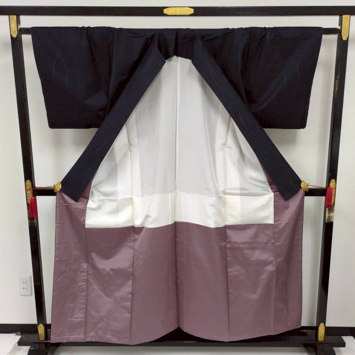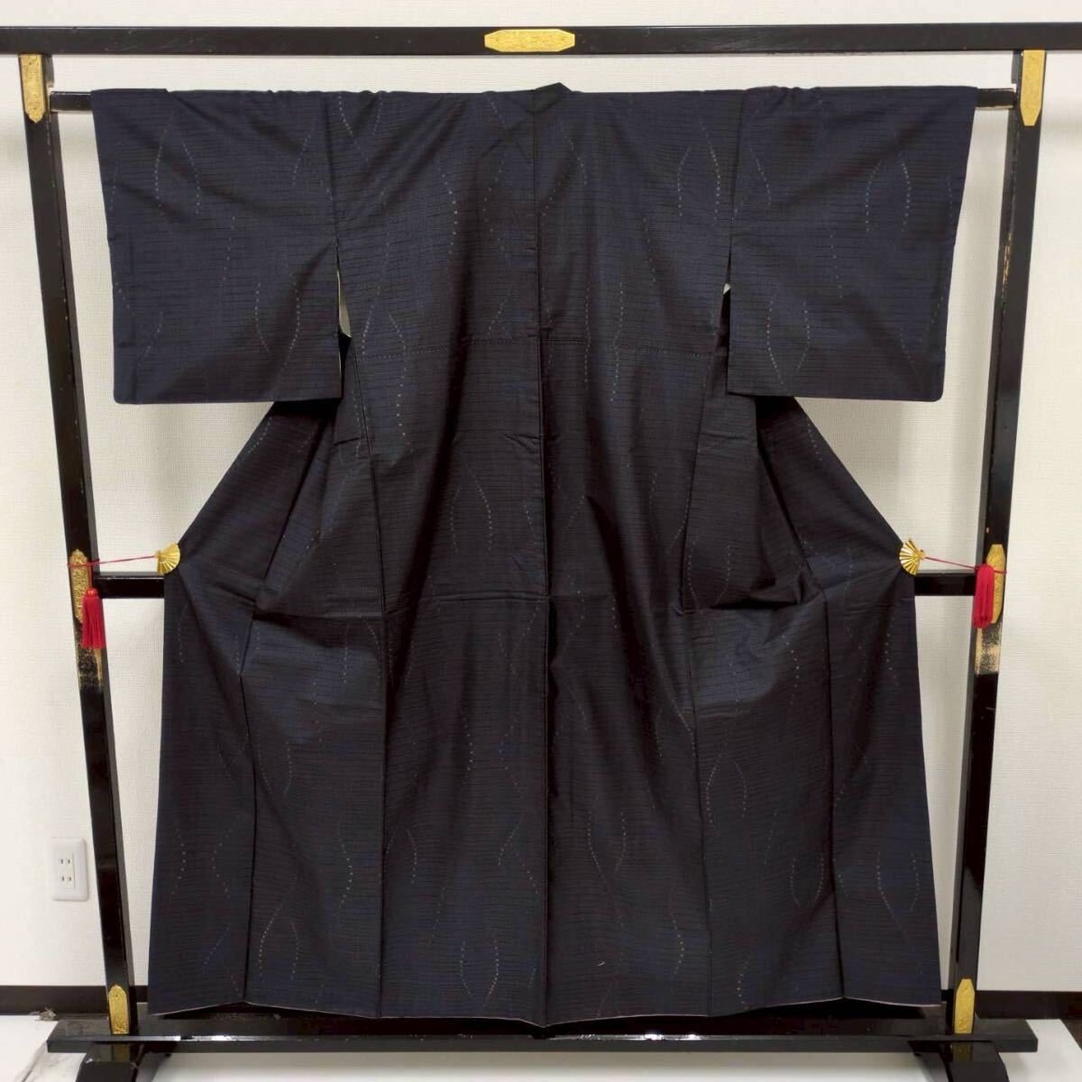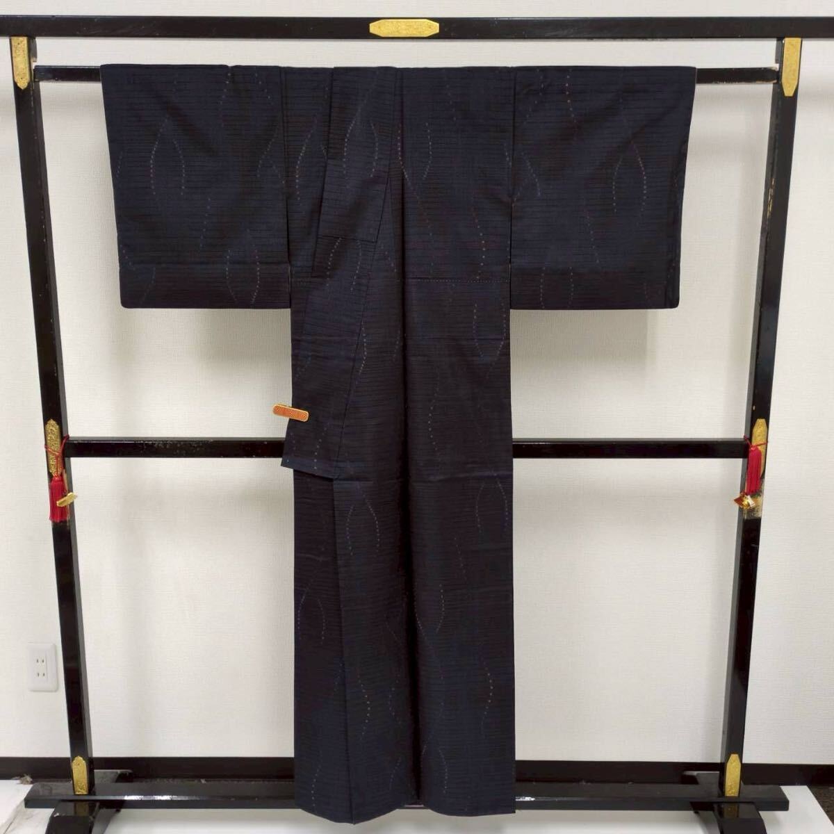 【楓】本場大島紬 正絹 泥藍染め 細かな絣 袷 着物 KK-494