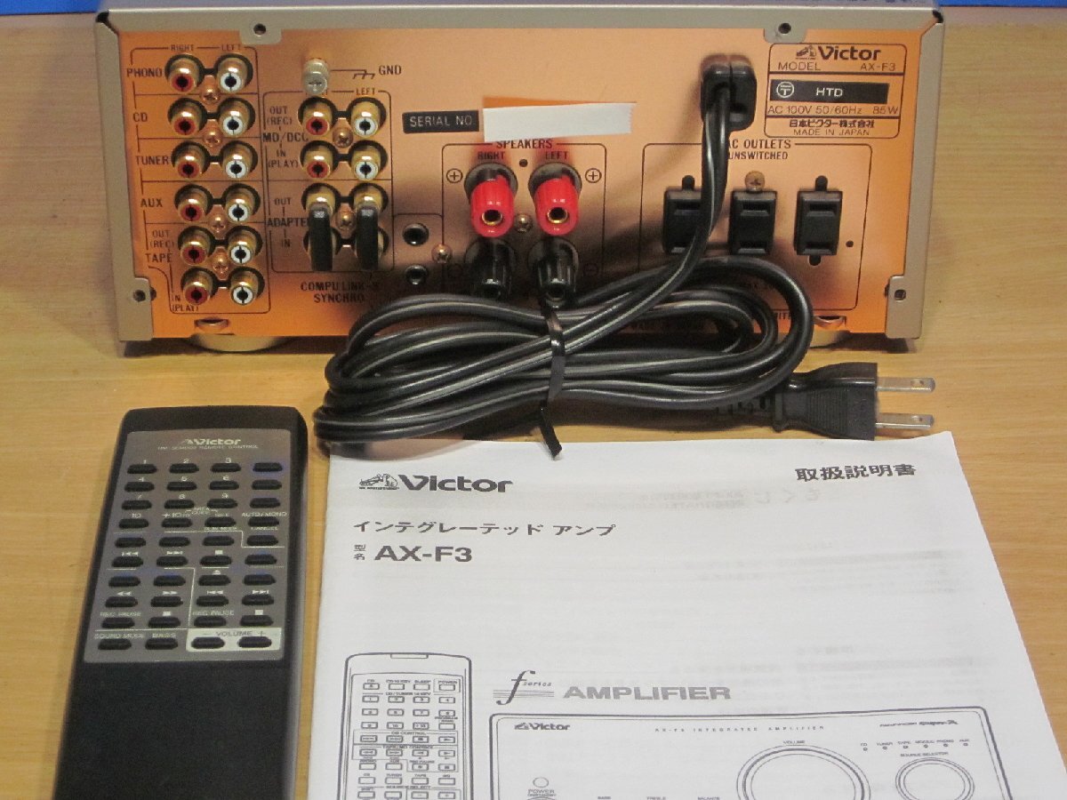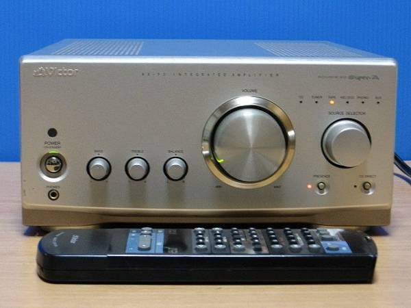 コンパクトサイズながら高音質 あると便利なリモコン&取説付(*^▽^*) 各部メンテナンス実施済み・動作良好です♪♪ ◎商品特長 *最大出力75W+75Wのハイパワー *PHONO端子装備~レコードプレーヤーをダイレクトに再生可能 *プロセッサー端子装備~グラフィックイコライザー等を接続出来ます *アドバンスド・スーパーA搭載~リニアティ性を向上 *プレゼンス(PRESENCE)搭載~小音量時や小型スピーカーでも聞きやすい 再生の為、低音の臨場感、中音の輪郭をハッキリさせます ◎動作確認 *各ラインよりの音出し、各動作確認済みです ◎メンテナンス *インプットセレクター分解整備 *SPリレー調整 *接点部チェック&清掃 *内部ブロアー 実施いたしました ◎外観状態 *小傷や擦り傷、天板に傷等ございますが前面に大きな傷はございません ◎付属品 *リモコン「RM-SEMD02」(画像4参照) ※標準の物ではございませんが電源、音量、ミュートの操作可能 *取扱説明書(コピー製本版) です ◎発送方法 *クロネコヤマト宅急便となります ※各地域送料、発送詳細は下記をご覧下さい ◎商品詳細 ・定格出力:50W+50W(6Ω、20Hz~20kHz、歪率0.09%) ・実用最大出力:29W+29W(6Ω、1kHz、EIAJ) ・全高調波歪率:0.003%(6Ω、1kHz、25W+25W) ・周波数特性:10Hz~100kHz(+0dB、-3dB) ・S/N比:108dB(CD) ・トーンコントロール:BASS 100Hz±8dB、TREBLE100kHz±8dB ・入力 6 (CD 、MD 、PHONO、Tuner 、Tape、AUX) ・出力 2 (MD、TAPE) ・プロセッサー入力/出力 ・スピーカー出力 1 (ターミナルはネジ式、バナナプラグ対応) ・サイズ:245W×120H×309.5Dmm ・質量:約4.9kg よろしくおねがいいたします。 写真は以前出品時のもので現品ではございません | ||||
