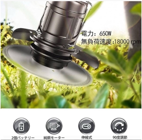 送料無料 草刈り機 充電式 草刈機 電動草刈機 バッテリー2個 替刃8枚付 21Vコードレス 多機能 電動刈払機 伸縮式 3種類替刃 軽量 芝刈り機