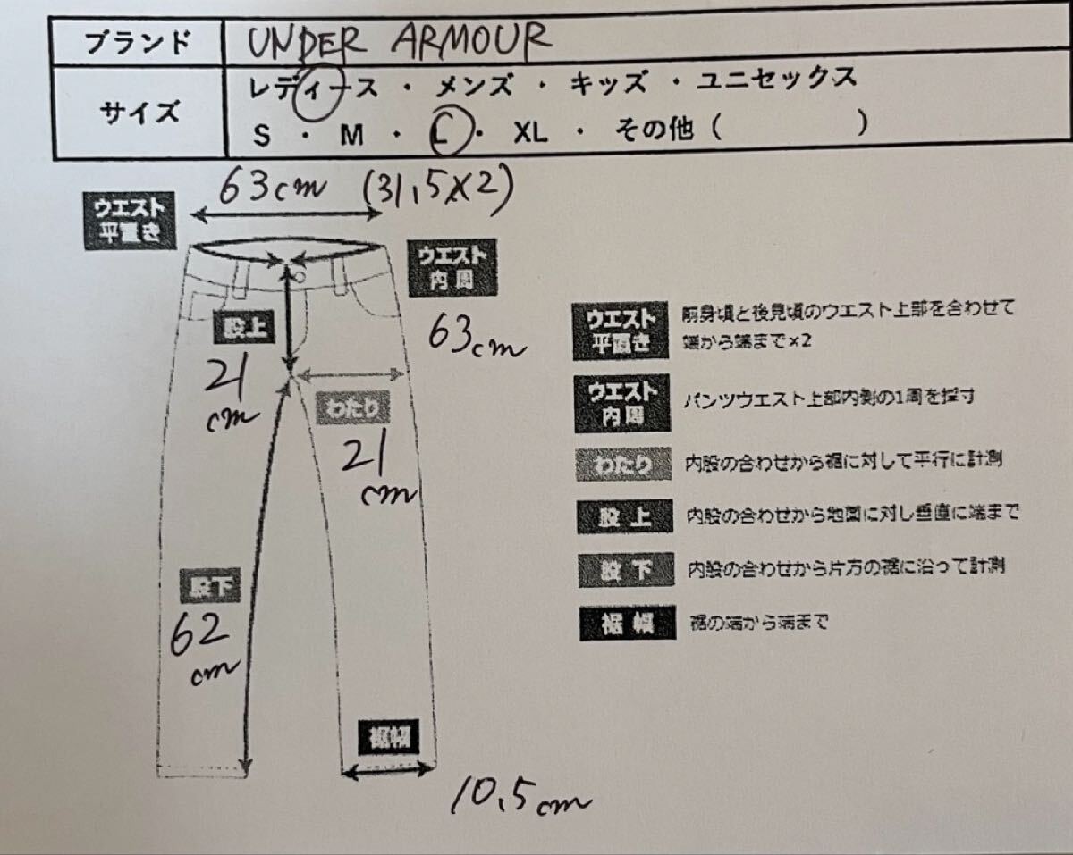 【サイズ】L(ウエスト約63cm/股下約62cm/わたり約21cm)