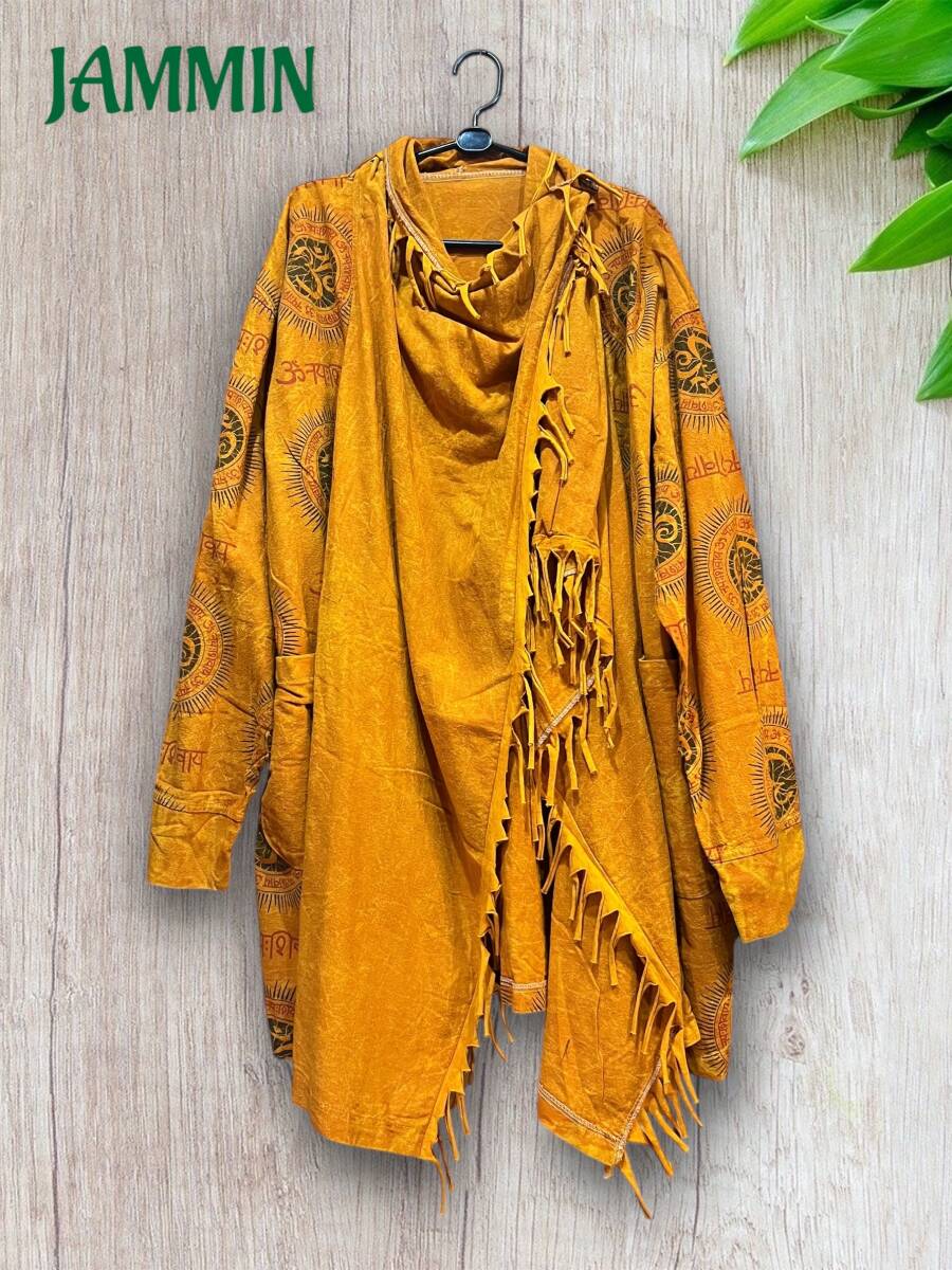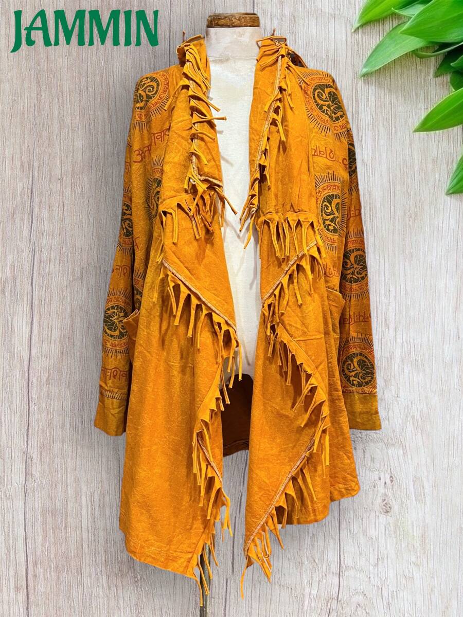 ゆったりざっくりしたデザインのアジアン柄(オーム、ヒンディ語)旅人風ジャケットです。