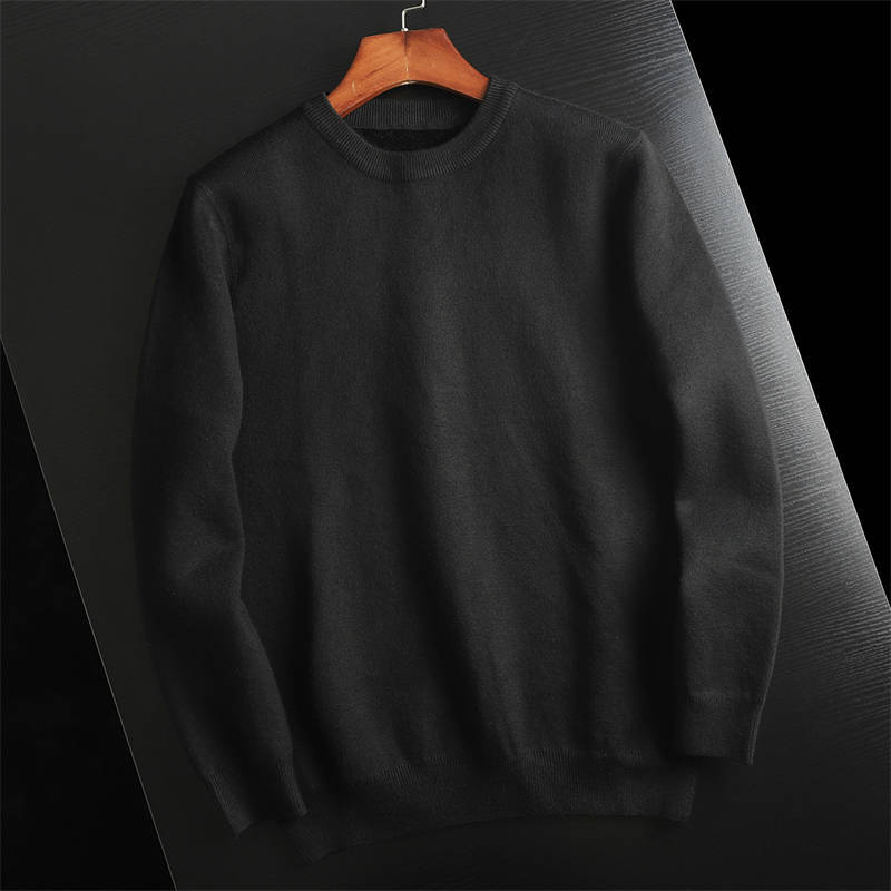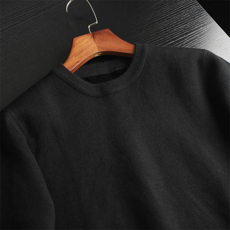 A554-Lブラック 裏起毛 ニット セーター メンズ クルーネック ウール混 新品 防寒 無地 厚手 冬服 カジュアル インナー用ニット トップス