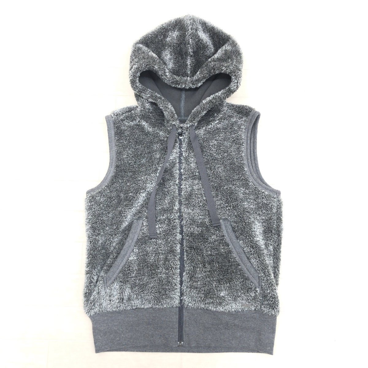 ●Eddie Bauer エディーバウアー 裏起毛 ジップアップ フーデット ボア ベスト PS グレー系 ジャケット パーカー 羽織り レディース