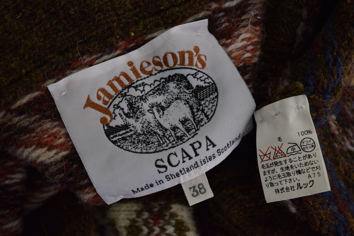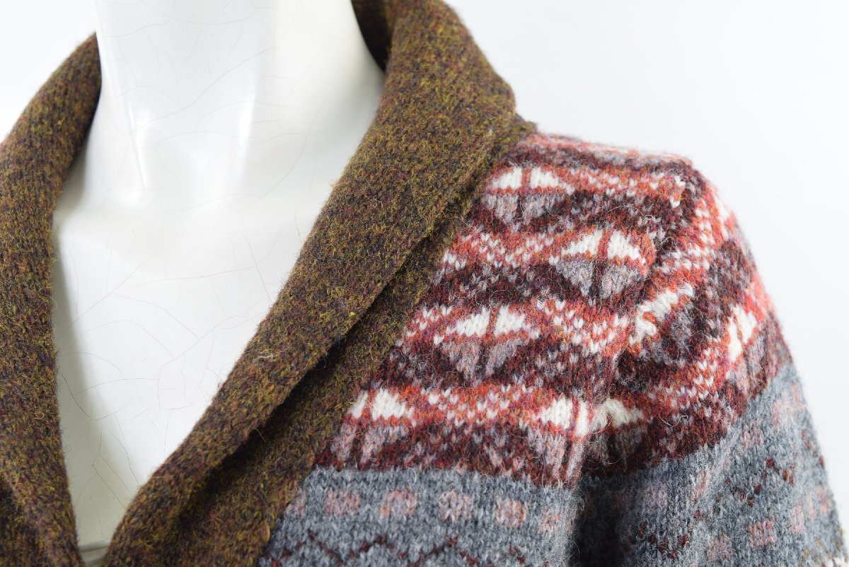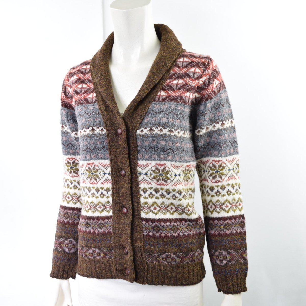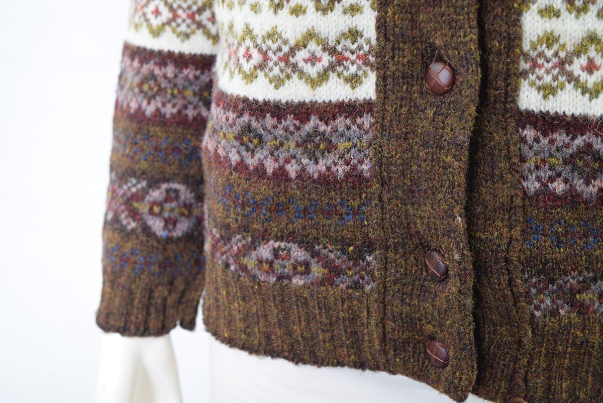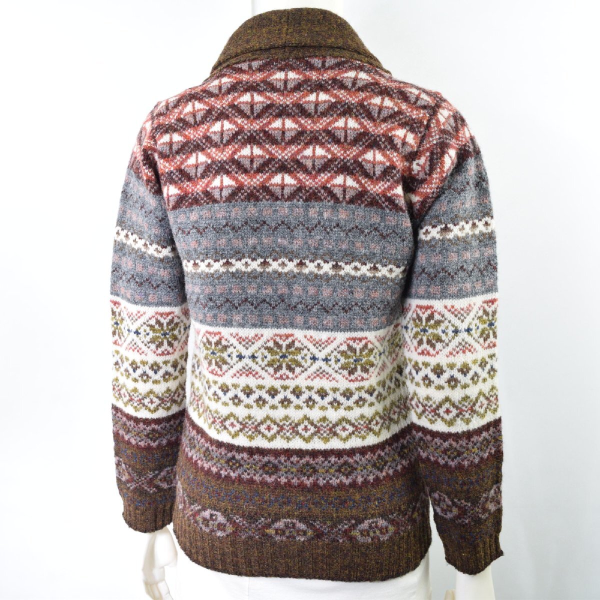 3014-25R0076★スキャパ SCAPA★老舗ジャミーソンズ社 草木染めウール フェアアイル柄 カーディガン 38 ダークブラウン 茶系 Jamieson's