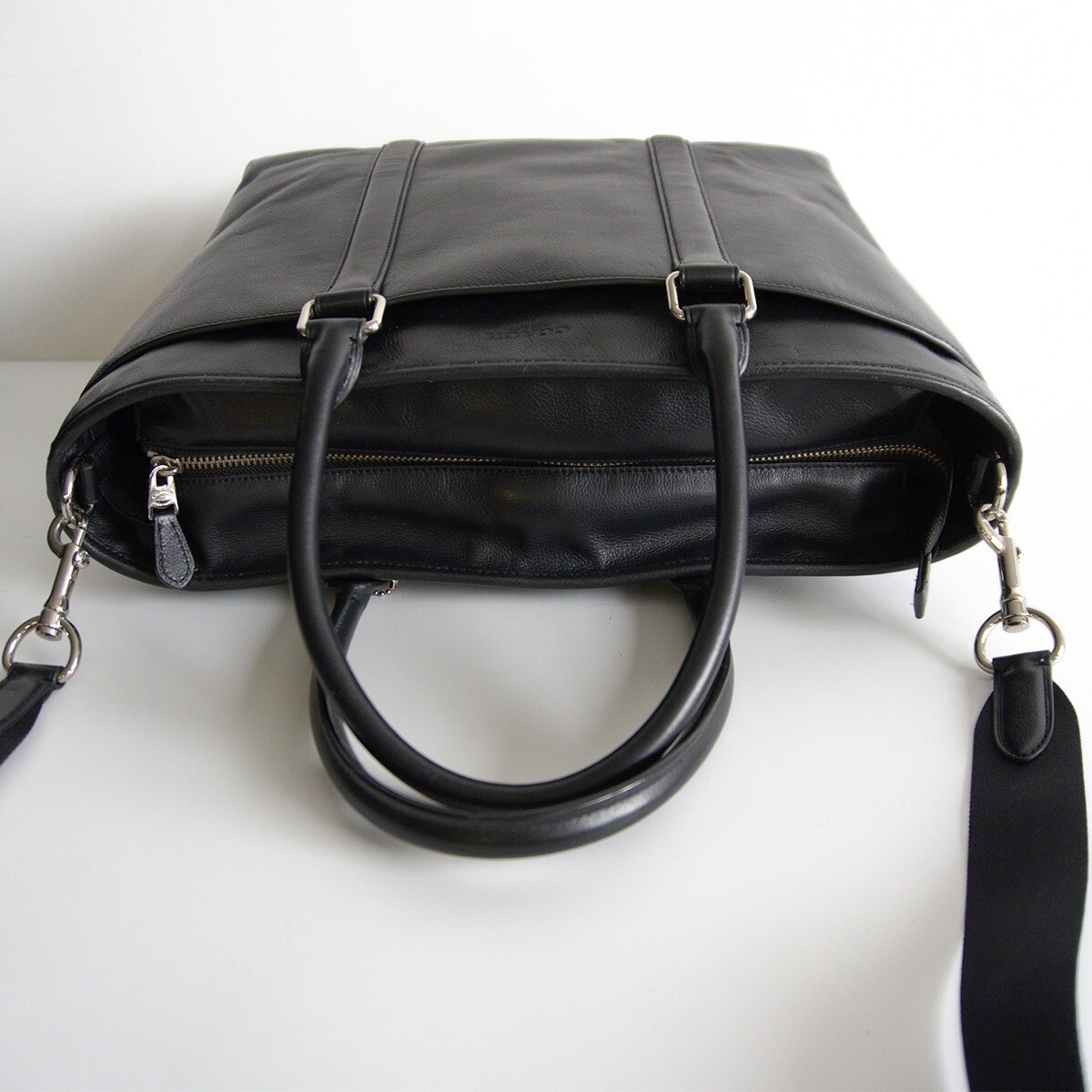 2WAY仕様の使い勝手の良いトートバッグ。収納力も抜群でショルダーストラップは取り外しが可能。お色はブラック×ブラウン。お探しの方や気になる方は是非。