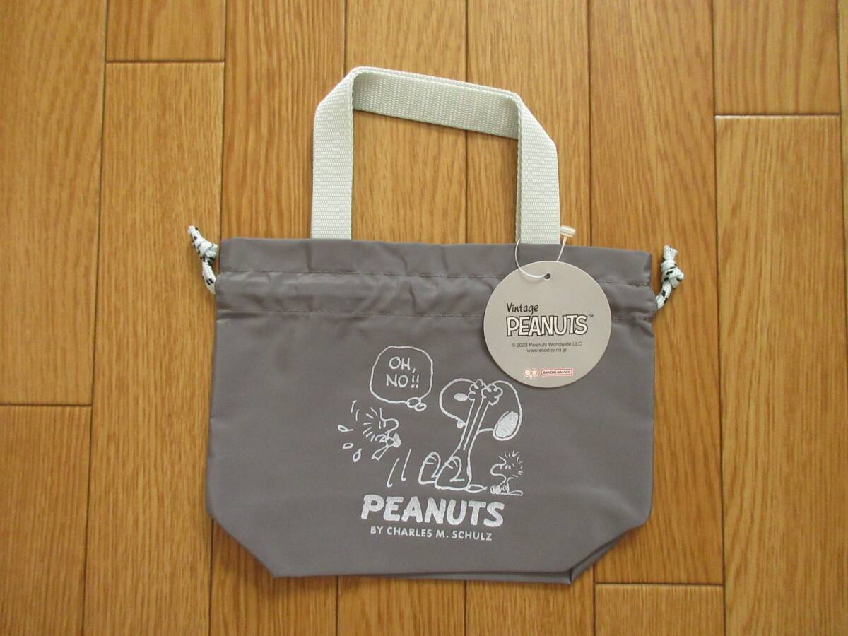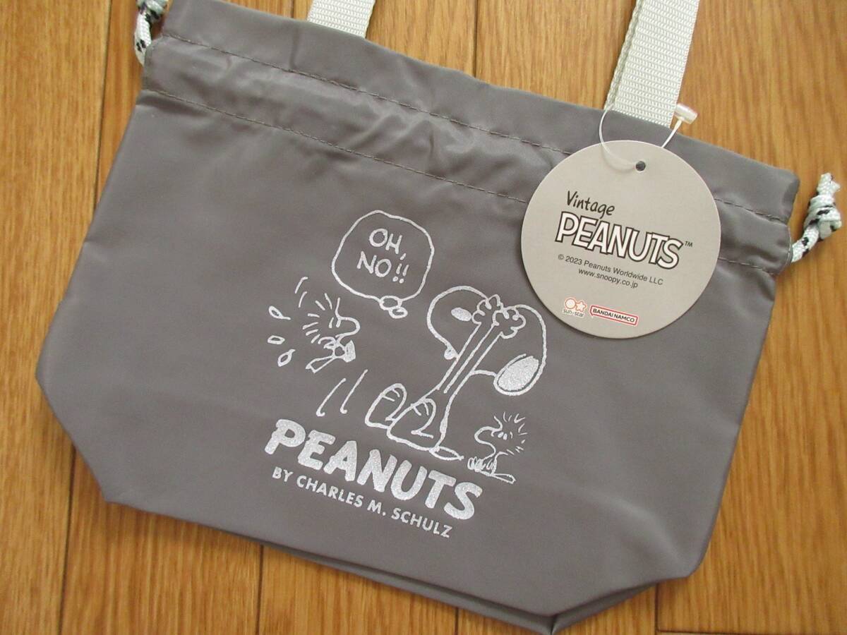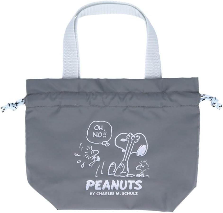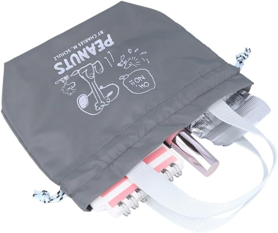 スヌーピー 持ち手付き 巾着 (グレー) ラメプリント 手提げ 巾着ポーチ ヴィンテージ ピーナッツ