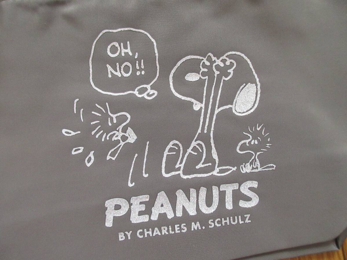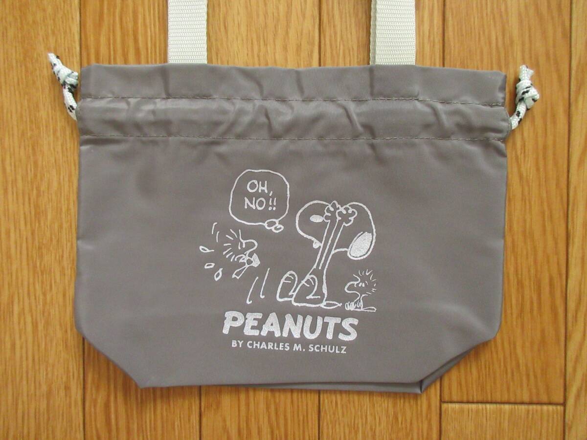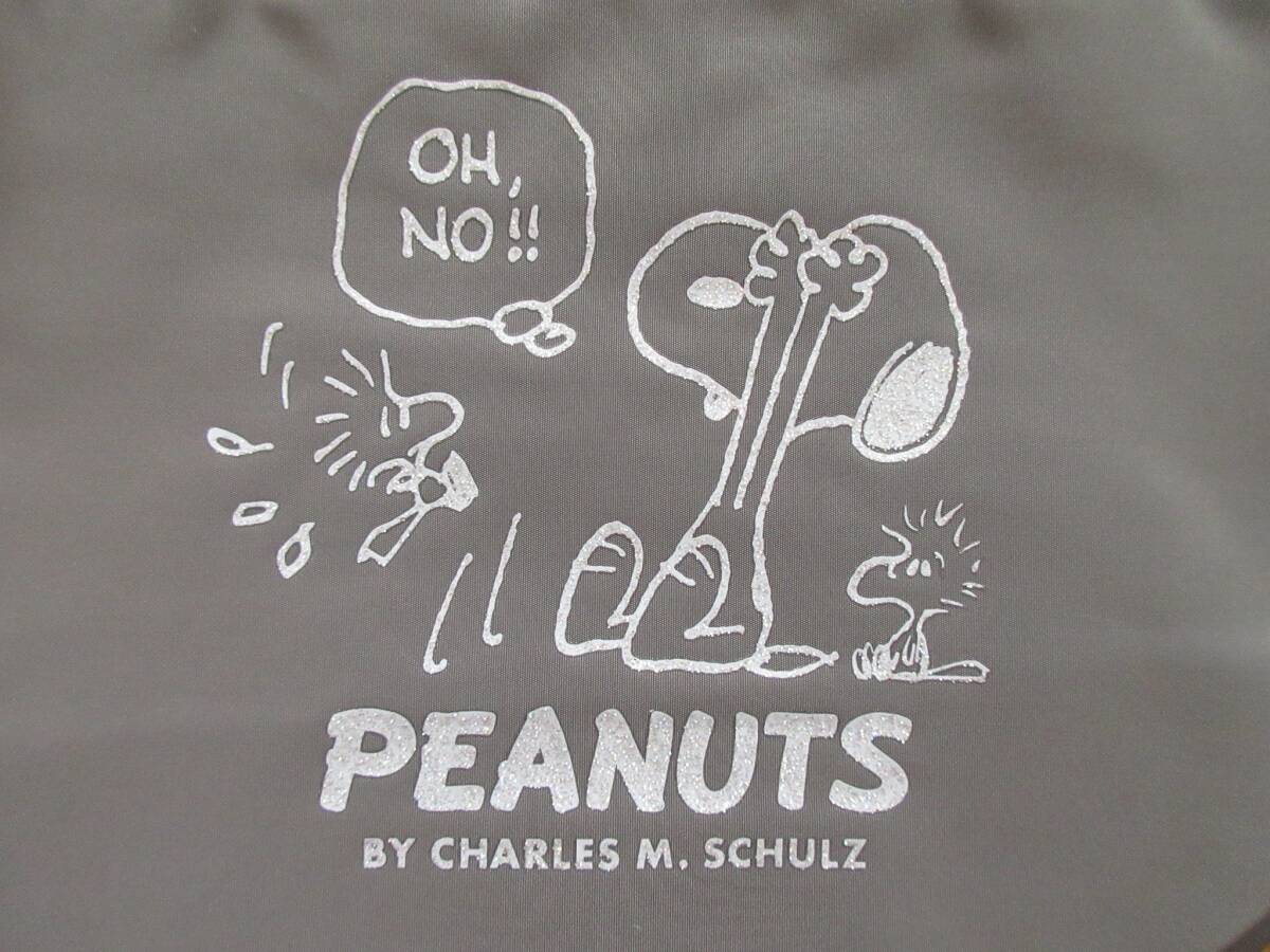スヌーピー 持ち手付き 巾着 (グレー) ラメプリント 手提げ 巾着ポーチ ヴィンテージ ピーナッツ