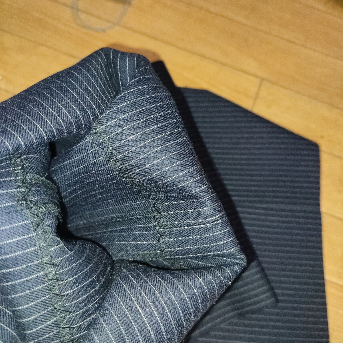 パンツの内側にシミ、クリーニング屋さんによる記入?があります。