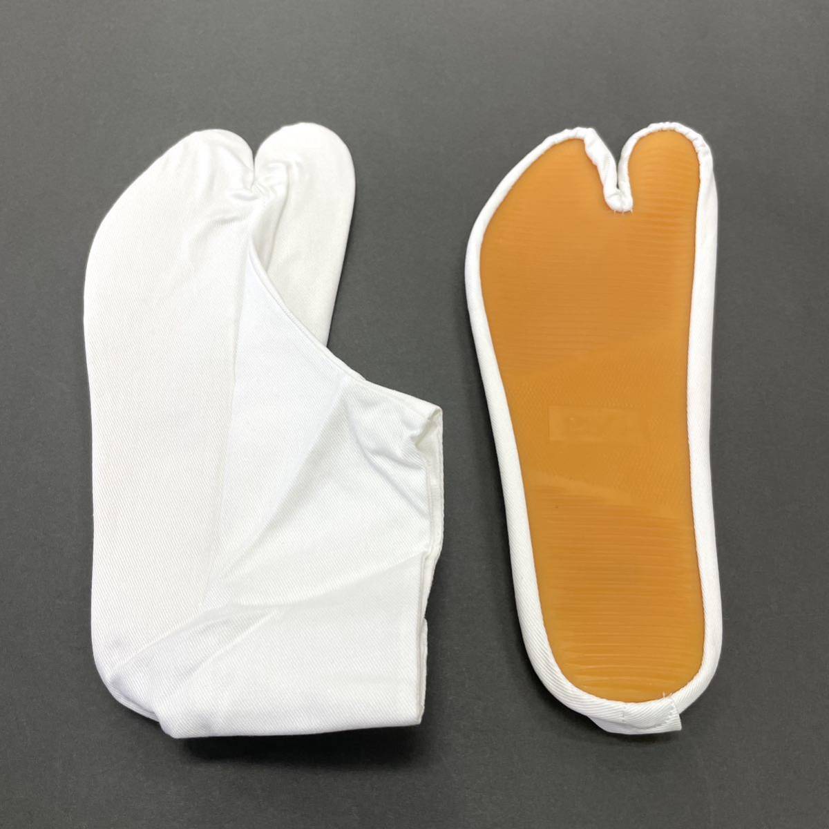 こちらは底面が足裏ゴムタイプの白たびとなっており、お祭りなどの和装イベントなどにご使用いただける簡易地下足袋となっております。