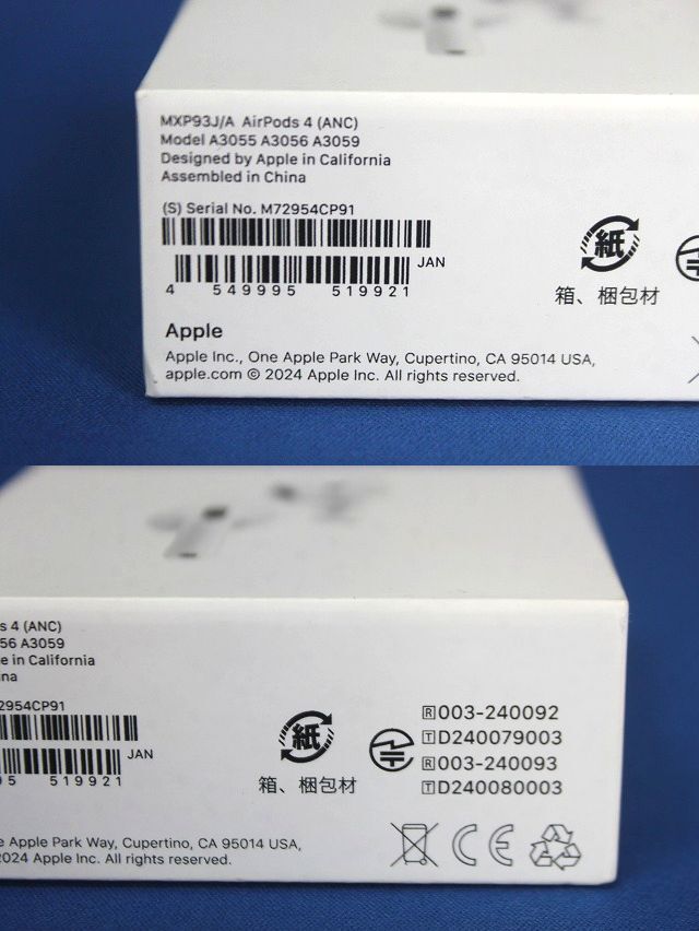 商品説明 | ご覧頂きありがとうございます。 こちらの商品は【美品 Apple アップル MXP93J/A AirPods 4 第4世代 アクティブノイズキャンセリング機能搭載 Model:A3055/A3056/A3059★送料600円★格安出品★】になります。 使用頻度のとても浅い中古美品とご理解ください。 元箱には若干のイタミがございます。 ホワイトグローブ着用にて丁寧に取り出しチェックを致しました。 全体的にキレイな状態になります。 (写真参照) ご安心くださいませ。 念のため 複数のスタッフにて電源及び動作チェックは致しました。 大丈夫です。 写真撮影時はホワイトグローブを着用にて行いました。 ご安心くださいませ。 ・出品をさせて頂きましたコチラの商品は・・・・ 元々の販売店にてお客様が勘違い購入をされ 結果当方に納品された品になります。 一度二度は手に触れた品になりますので、若干の使用感はございます。 当方にて所有するスマートフォンに接続してチェック致しました。 (写真参照) 大丈夫です。ご安心くださいませ。 初期設定等をお考えの方は落札者様にて行ってください。 何卒 ご理解くださいませ。 従ってタイトルには美品とさせて頂き 格安出品をさせて頂きました。 繰り返しになりますが普通にお使い頂けます。 しかしながら新品未使用品ではございません。 中古美品とご理解くださいませ。 神経質な方のご入札はご遠慮くださいませ。 万が一、落札者様のお手元に届き不備不具合等がございましたら、返品対応をさせて頂きますのでどうぞご安心くださいませ。m(--)m (返品対応期間は商品到着1ヶ月間とさせて頂きます) 内容及び状態は写真をご覧くださいませ。m(--)m 出品は・・・写真アップされている物が全てになります。 【メーカー】 Apple 【型式】 AirPods 4 MXP93J/A 【製造番号】 M72954CP91 どうぞご入札のご検討を宜しくお願い致します。 m(--)m m(--)m m(--)m m(--)m ≪気持ちよくスムーズな御取引ができるよう努めて参ります≫ ★レターパックプラスで宜しければ全国600円にて発送可能になります。 どうぞ ご入札のご検討を宜しくお願い致します。m(--)m ・当方では毎週多数の商品を格安出品をさせて頂いております。 複数落札の場合、可能な限りコンパクトに同梱致しまして発送をさせて頂きます。 梱包サイズ、重量によりますが複数落札の場合、発送は「ゆうパック」になる事がございます。 お気軽にお問い合わせください。 ≪気持ちよくスムーズな御取引ができるよう努めて参ります≫ ★商品画像はPCや環境の違いにより現物とは若干色合いが違う場合もございますので予めご了承ください。 ★神経質な方のご入札はご遠慮くださいませ。 ★他にも楽しいアイテム等を格安出品致しております。 宜しければご覧くださいませ。 ☆チャント梱包して発送致します。 No.5500 |