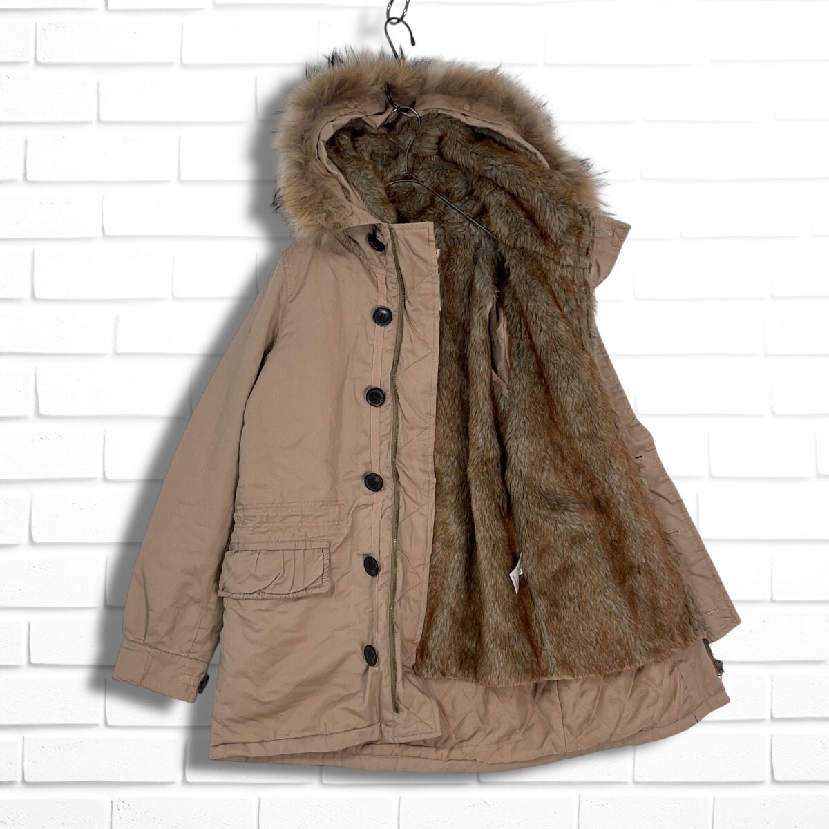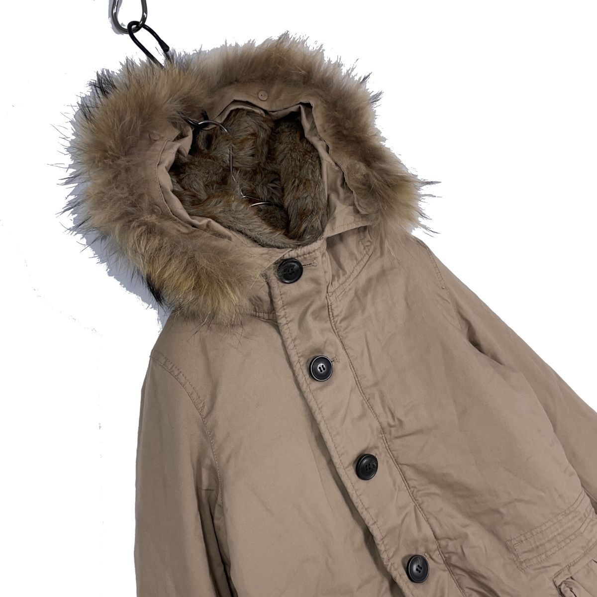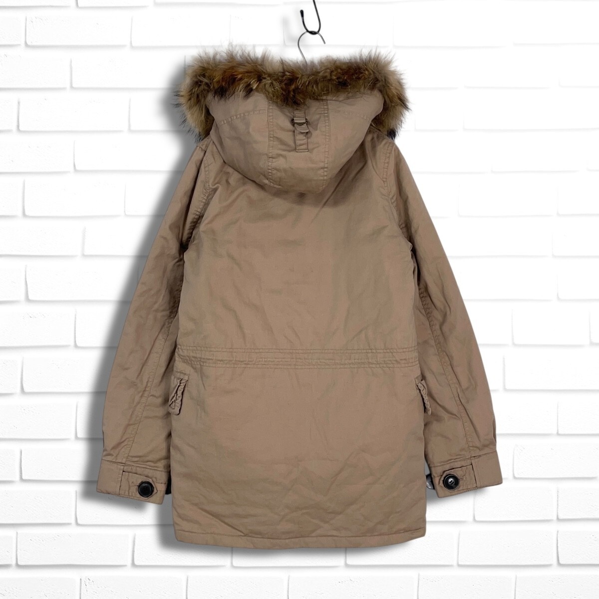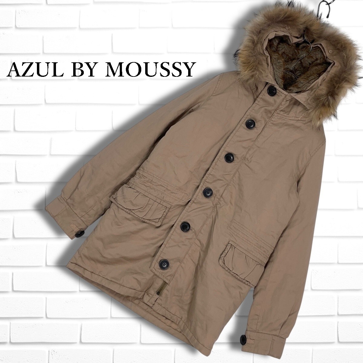 ◆良品◆ AZUL BY MOUSSY アズール バイ マウジー リアル ファー 中綿 モッズコート ベージュ系 レディース S ◆送料無料◆ 5945I◇