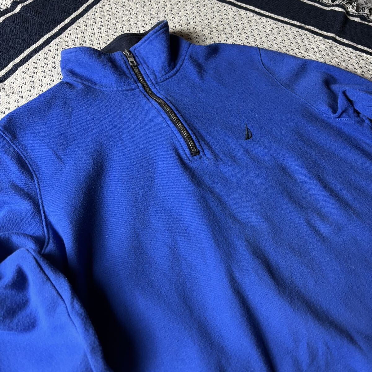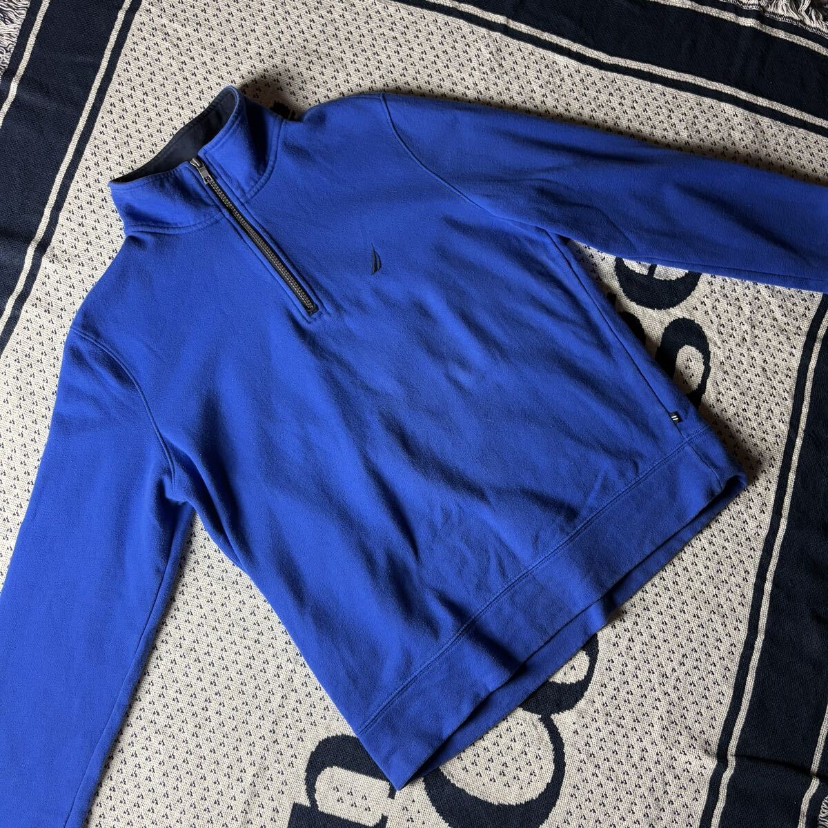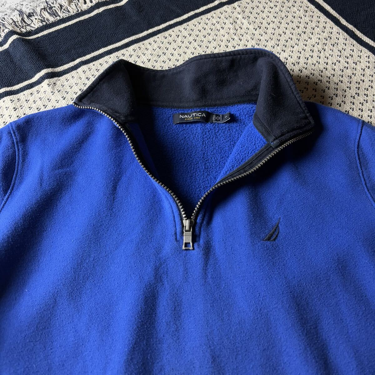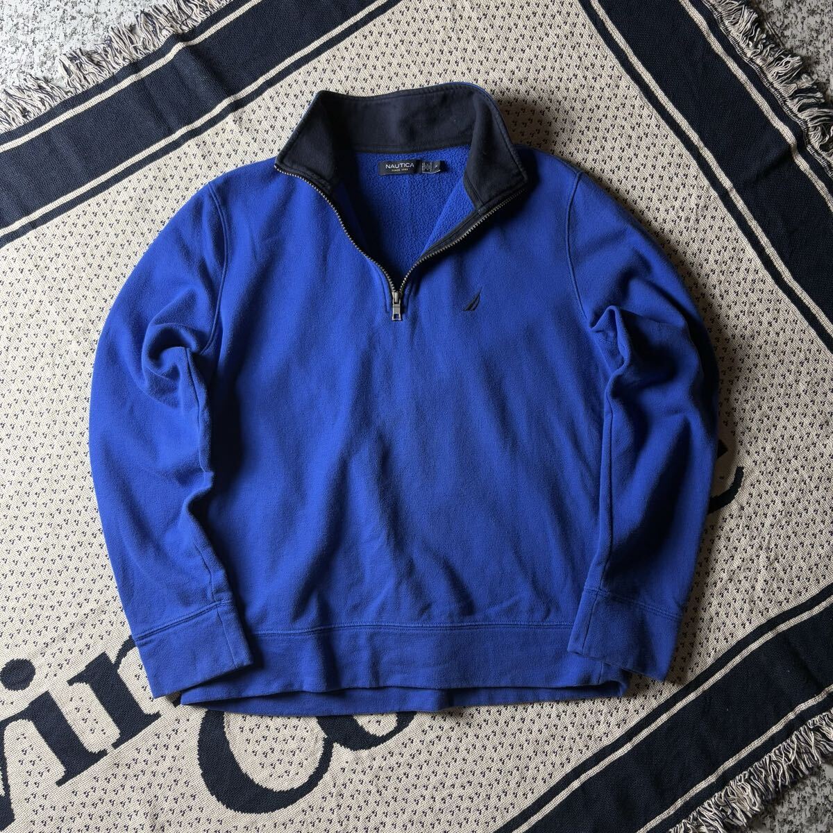 【グッドレギュラー】ノーティカ ワンポイント刺繍ロゴ ハーフジップスウェット ブルー Mサイズ 古着  トレーナー