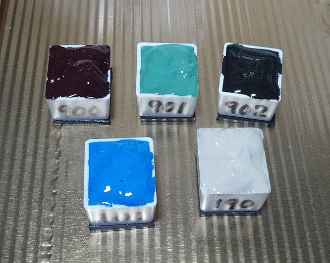 パステル調の淡い青緑。「白」が加えられており、教会の塔、錆びた金属の表面、浅瀬、夜のクールな照明下の風景などにマッチするセミオパークな風合いです 。