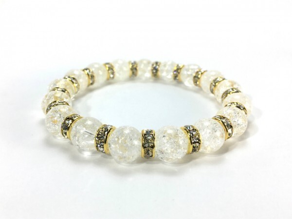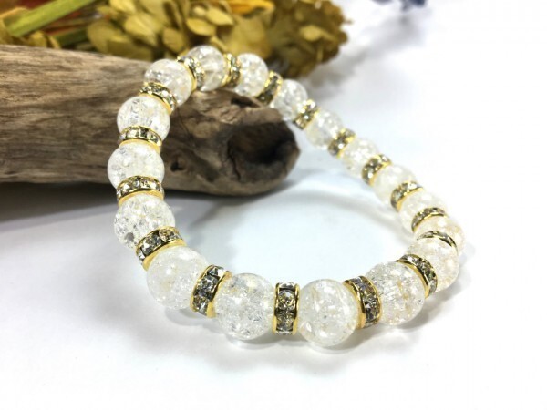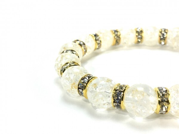 こちらは、10mm玉のクラック水晶を使用したパワーストーンブレスレットです。間にはロンデルを挟み高級感あるブレスレットに仕上げています。石大きさは腕にも馴染みやすいように10mm玉を使用して、サイズは内径約18cmです。(サイズ調節も無料で承っています。サイズ変更の場合は落札後、取引ナビにてご一報くださいませ。) 数に限りがございますので気になる方はお早めにどうぞ。