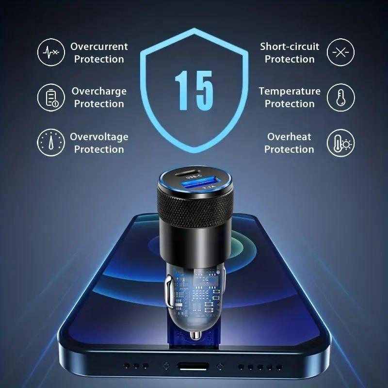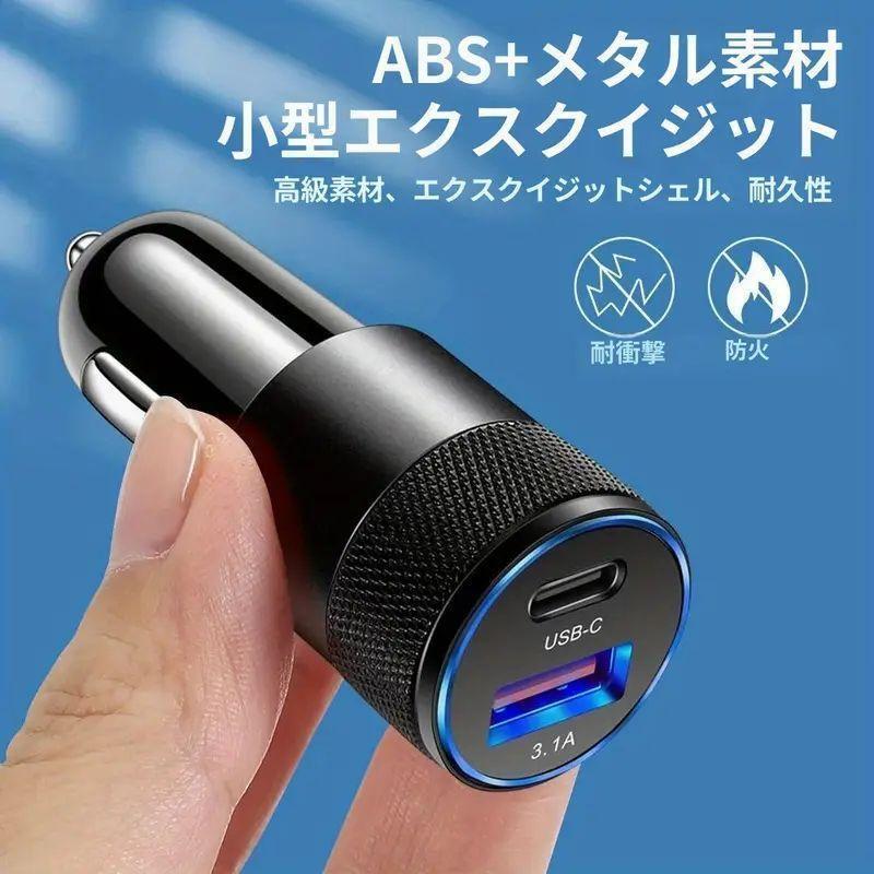 シガーソケット 急速充電 USBカーチャージャー 2ポート 車載充電器 車用充電器 急速車充 車充電 急速 高速 USB-C iPhone充電 Android対応