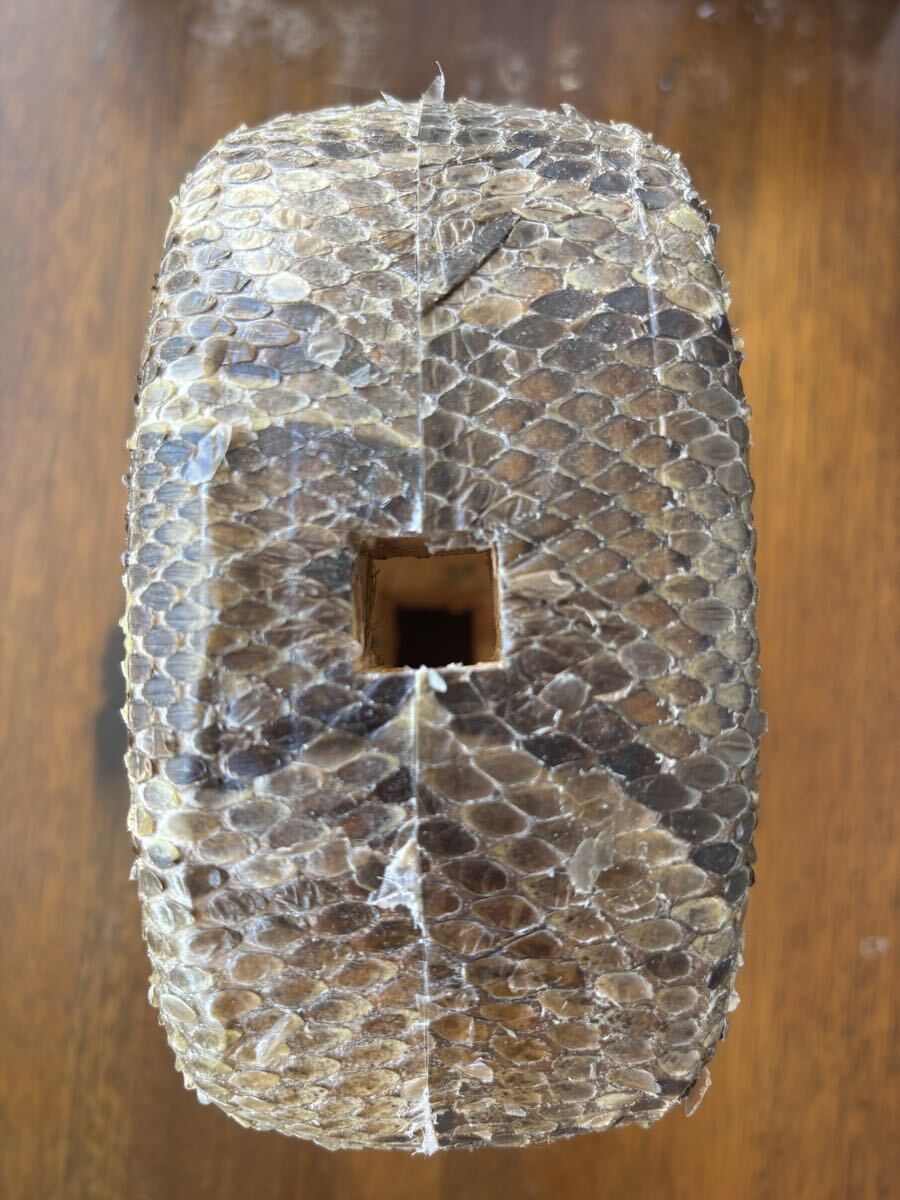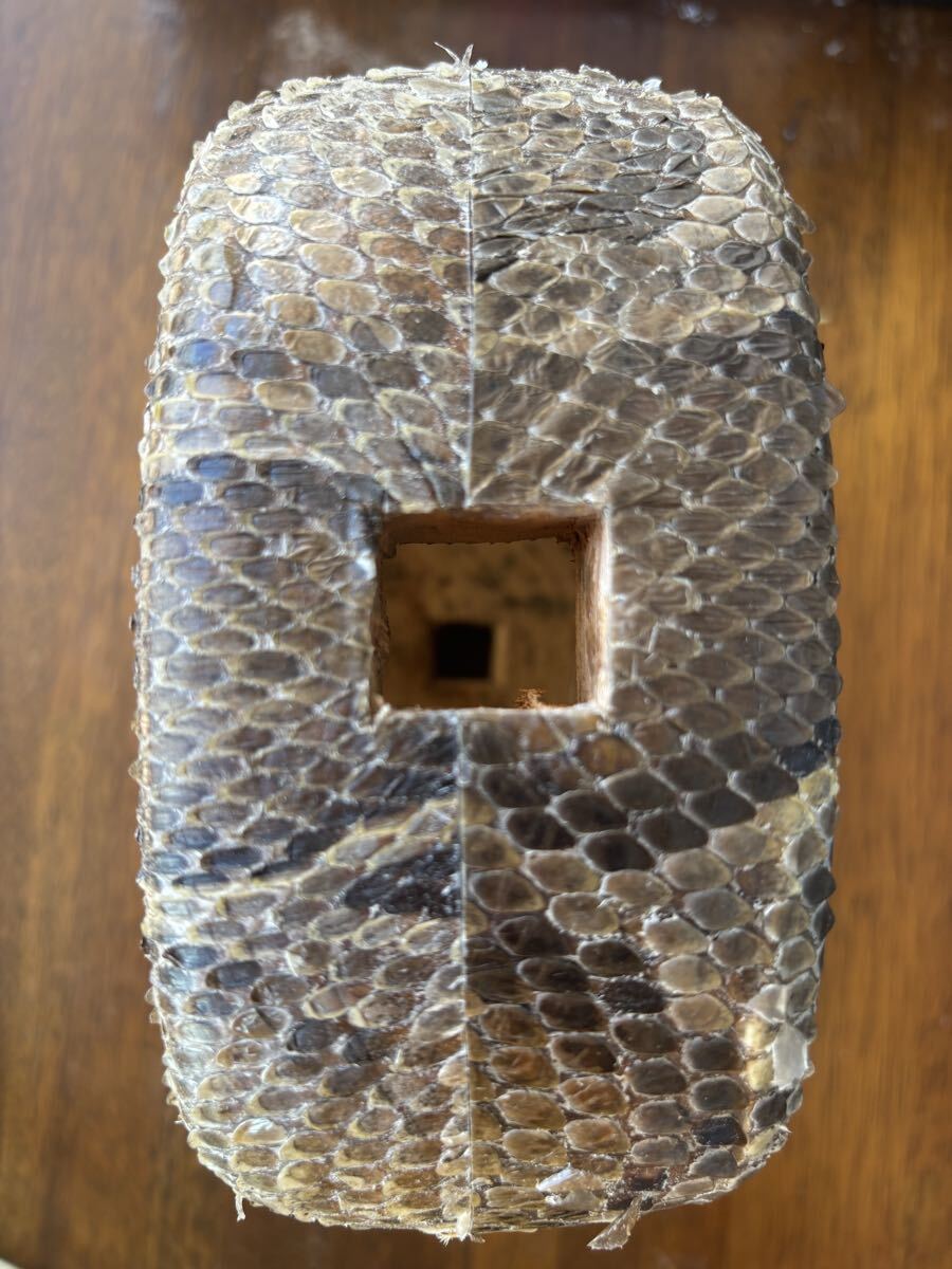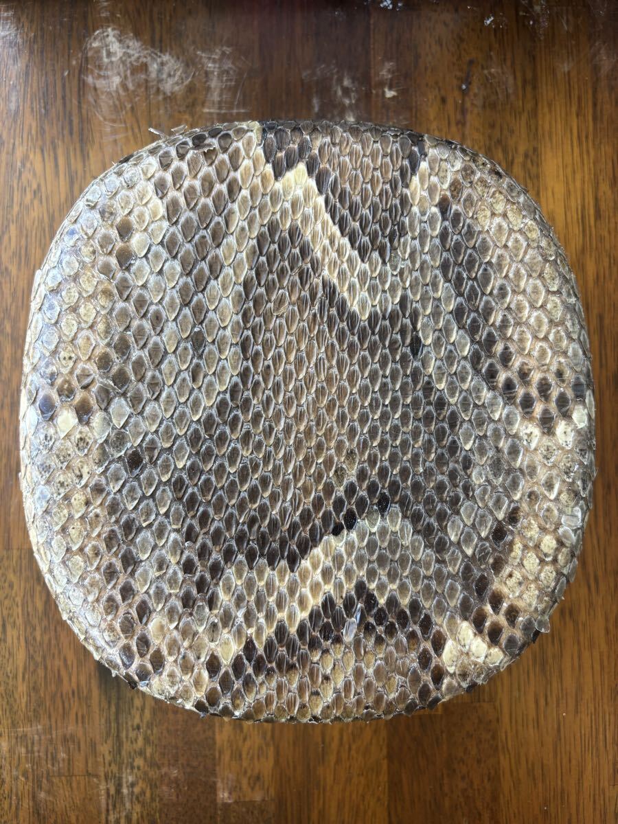 おそらく推測しますに昭和初期〜中期頃に制作された胴を用いて、今年八月に両面本皮張りを施し仕上げました。古いチーガですので現代型より若干小さい寸法です。胴の強度に問題なく割れなどはないものを使用しています。皮の張り具合は表七分、裏六分の優しい張りに調整しています。皮の薄さも下処理段階で調整していますので、キンキンに強い張りの音色ではなく、「柔らかい音色」をお好みの方におすすめします。このような張り具合に仕上げたのは当方柔らかい音色のみ強い関心があるためです。民謡の情歌など柔らかい表現ができるチーガをお探しの方におすすめします。近年更に値上がりの起きている蛇皮ですがこの機会にいかがでしょうか。落札後はノークレームノーリターンとなっております。宜しくお願い申し上げます。https://ameblo.jp/34doumakiya/