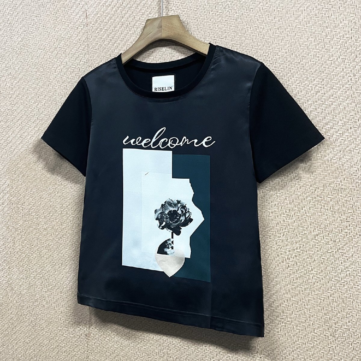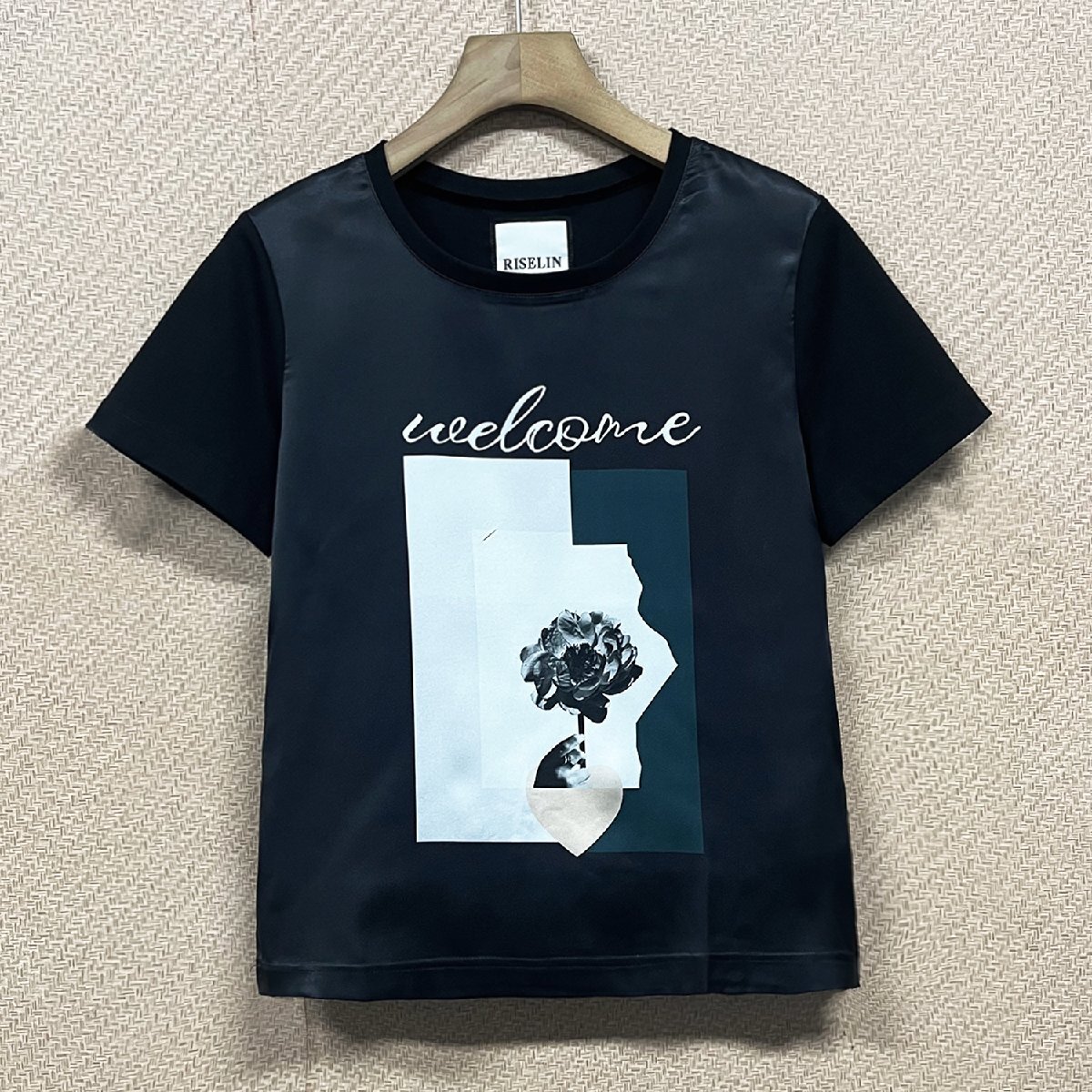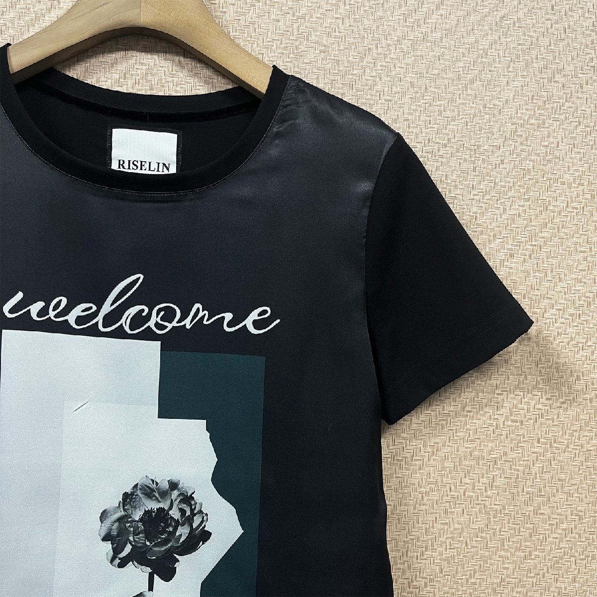 個性ヨーロッパ製※定価2万◆ブルガリア発※RISELIN 半袖 Tシャツ シルク混 快適 ソフト 薄手 花柄 カジュアル トップス レディース 夏 M/46サイズ