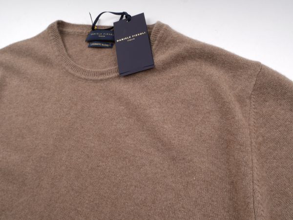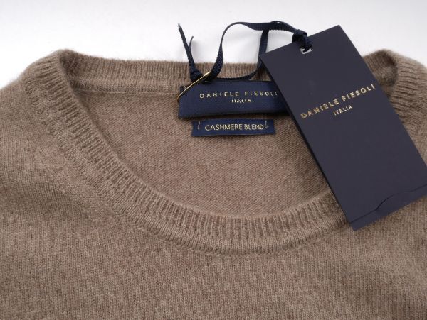 【新品未使用】DANIELE FIESOLI◆Made In Italy◆M◆カシミヤブレンド ウール クルーネック ニット セーター◆ヘザー グレージュ ブラウン