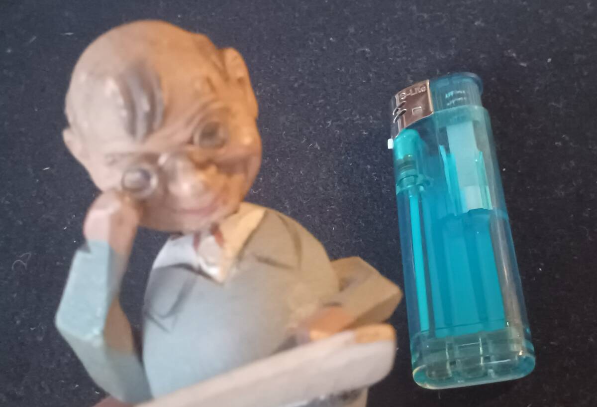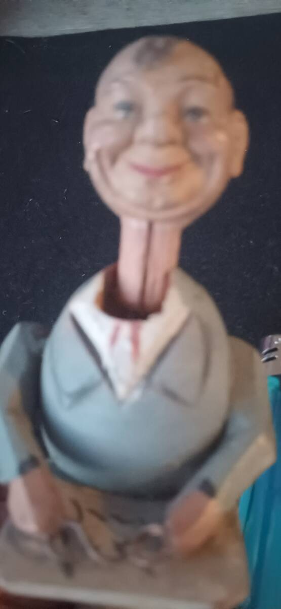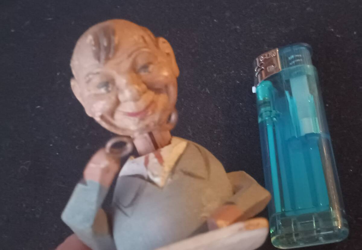 状態は御覧の通りまずまず綺麗です。破損、欠損はありません。木彫のカラクリ変え栓です。レバーを引くと、掛メガネのポーズをします。まずまず綺麗です。<BR>