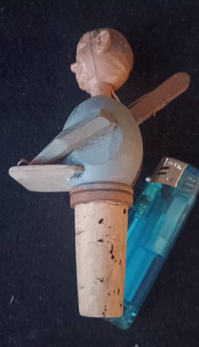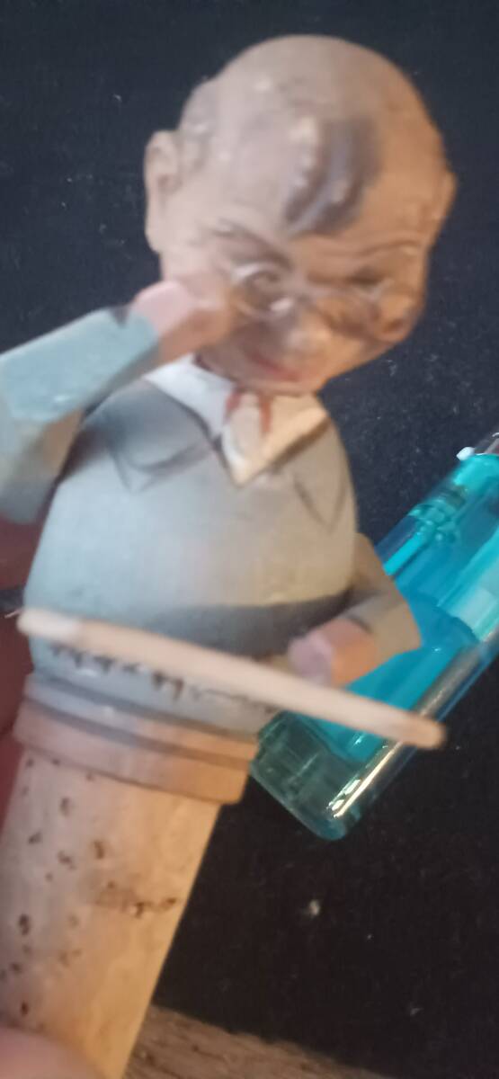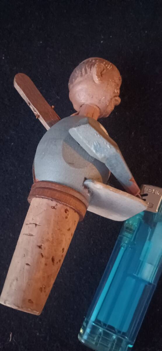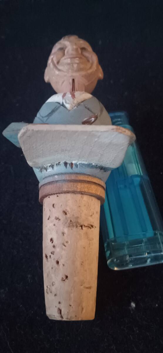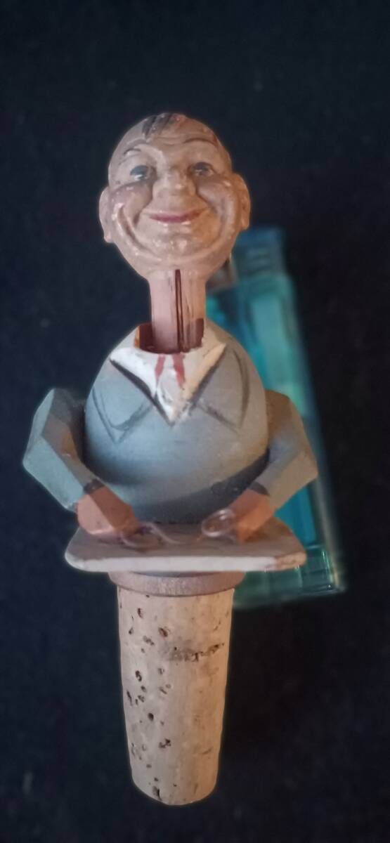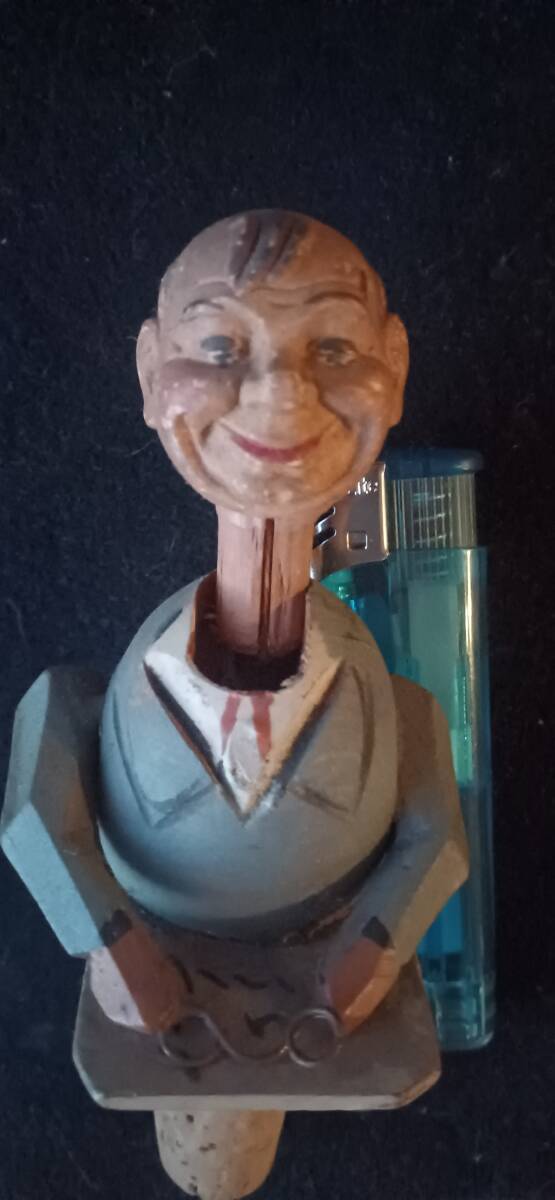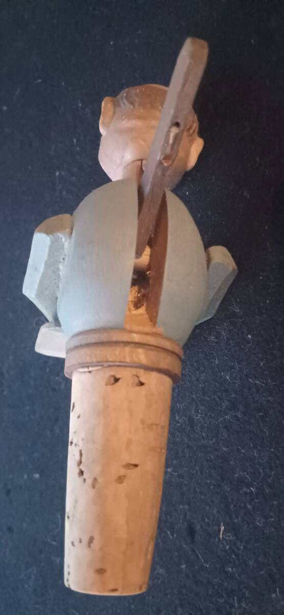 !秀品!欧米のコルクワインの変え栓!「木彫カラクリ変え栓・(掛メガネ)」長さ120ミリ。(詳細不明)