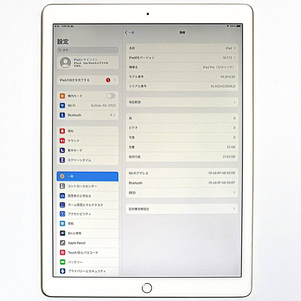 商品説明 | インボイス(領収書)の発行が可能でございます。 事業者登録番号 T8810656303714 ご要望の場合は商品の落札後に取引メッセージよりお申しつけくださいませ。 ●商品の状態 ※iPad Pro (12.9インチ) ゴールド 32GB ML0H2J/A ※モデル:A1584 ※iOSバージョン:16.7.12 ※シリアル番号:DLXQJ4GZGMLG ※バッテリーの状態:最大容量98% (充放電回数49回) iMazingソフトにて計測 (参考程度とお考えください。) (Dockコネクタの内部が比較的キレイなので使用期間は少ないとおもわれます。) ※アクティベーションロックは解除しております。 ※iCloudアカウントはサインアウトしていますのでご安心くださいませ。 ※データは初期化済みでございます。 ディスプレイに使用に支障がない程度の経年変化による薄い液晶ヤケがありますが 前後カメラ及びスイッチとボタン類タッチパネルの作動状態は良好です。 基本動作は全て問題ないことを確認しております。 商品状態ランク:B iPad本体は若干使用感がある状態ですがタッチパネルはキレイです。 タッチパネルに傷はなくとてもキレイです。 フレームとバックパネルの一部に若干使用感がございます。 iPad本体以外の付属品は欠品しております。 状態ランク S:新品未使用品 A:ほとんど傷がなく良い状態 B:多少の使用感がありますが比較的きれいな状態 C:目立つ傷ダメージ汚れなどがある状態 D:非常に目立つ傷ダメージ汚れなどがある状態 ●出品している商品について 私以外の方が使用しておりました商品を出品させていただいておりますので 修理歴、修復歴、部品交換歴がある可能性があり 保証による交換品または店頭展示品(デモ機)である可能性もございます。 商品説明にはなるべく正確な状態をお伝えするべく点検をしておりますが 記載するべき事項を見落としている可能性がある場合がございます。 商品の状態の表現につきましては相違及び記載漏れなどがある場合がございます。 商品の状態の表現の相違につきましては一切の対応をいたしかねます。 ボタン類及びカメラその他タッチパネルなどは経年劣化がある事をご理解願います。 カメラの劣化による内部の塵の映り込みは判別が難しいため一切の保証をいたしかねます。 スピーカーとマイクの音の出入力の経年劣化につきましても保証をいたしかねます。 ご使用時のバッテリーのパフォーマンスにつきましては保証いたしかねます。 バッテリーの容量低下による不具合等は一切の対応をいたしかねます。 Apple公式以外のお店で修理や点検などをされた場合は一切の保証をいたしかねます。 ご自身で部品の交換または分解などをされた場合も一切の保証をいたしかねます。 上記に記載をさせていただいております事項以外の初期不良につきましては 中古品につき商品のお届け後から7日以内のみ対応をさせていただきます。 商品説明と著しい相違があった場合を除きまして ノークレームおよびノーリターンでのお取引をお願いいたします。 |