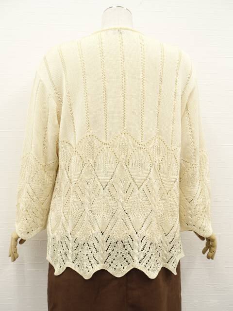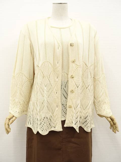 長袖ドロップショルダーカーディガン+長袖ドロップショルダーカットソー ニットアンサンブル2点セット 40 アイボリー 総柄