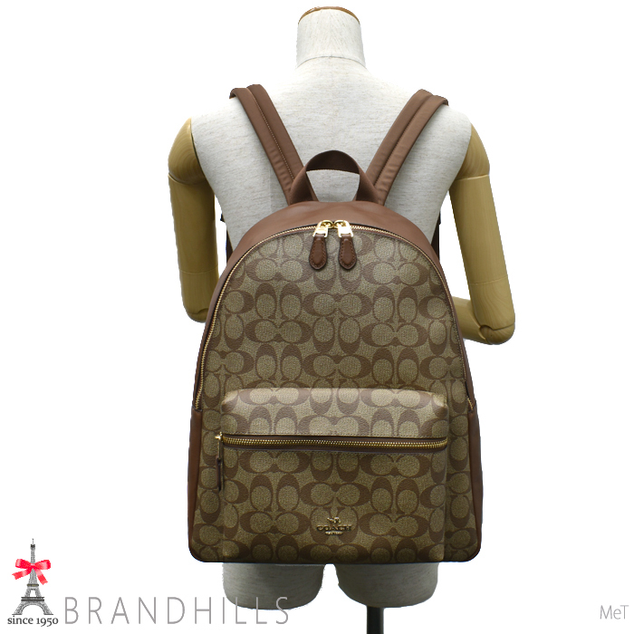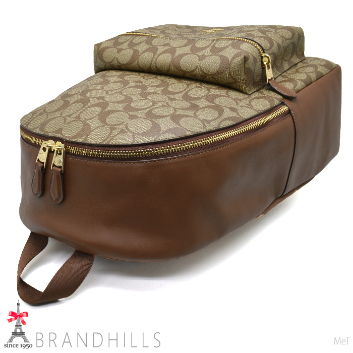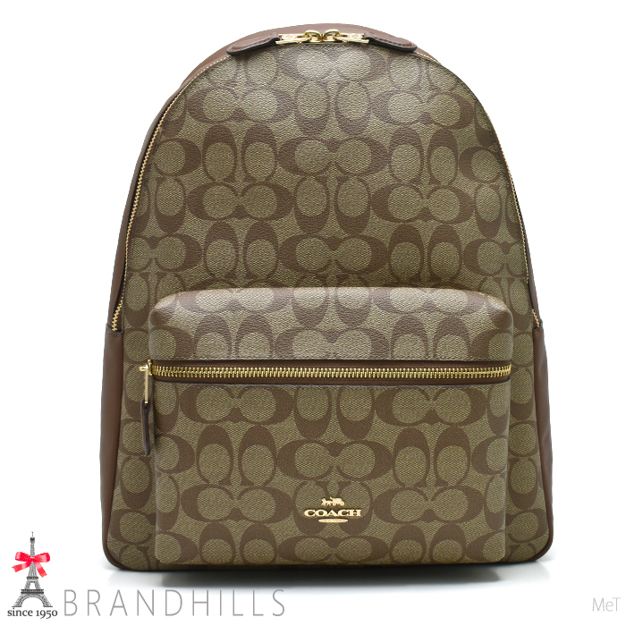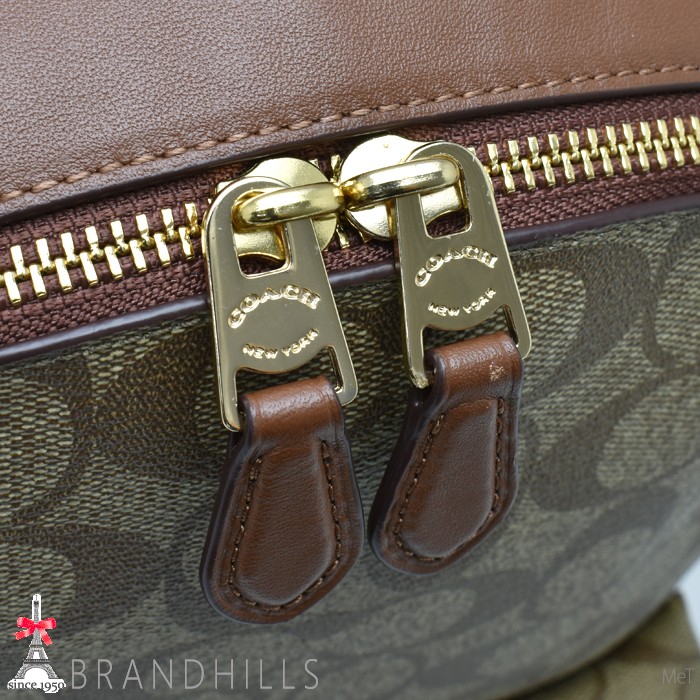 商品名コーチ バックパック レディース シグネチャー PVC レザー カーキ サドル リュック
