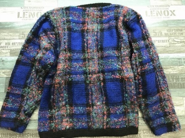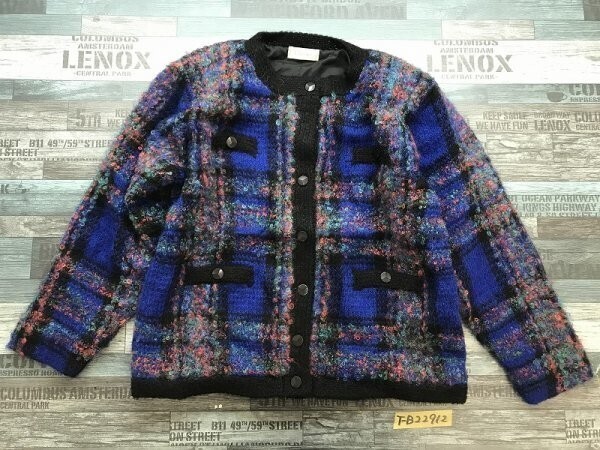 Piele レディース チェック柄 肩パッド ウールアクリル ニットジャケット 青黒 です。