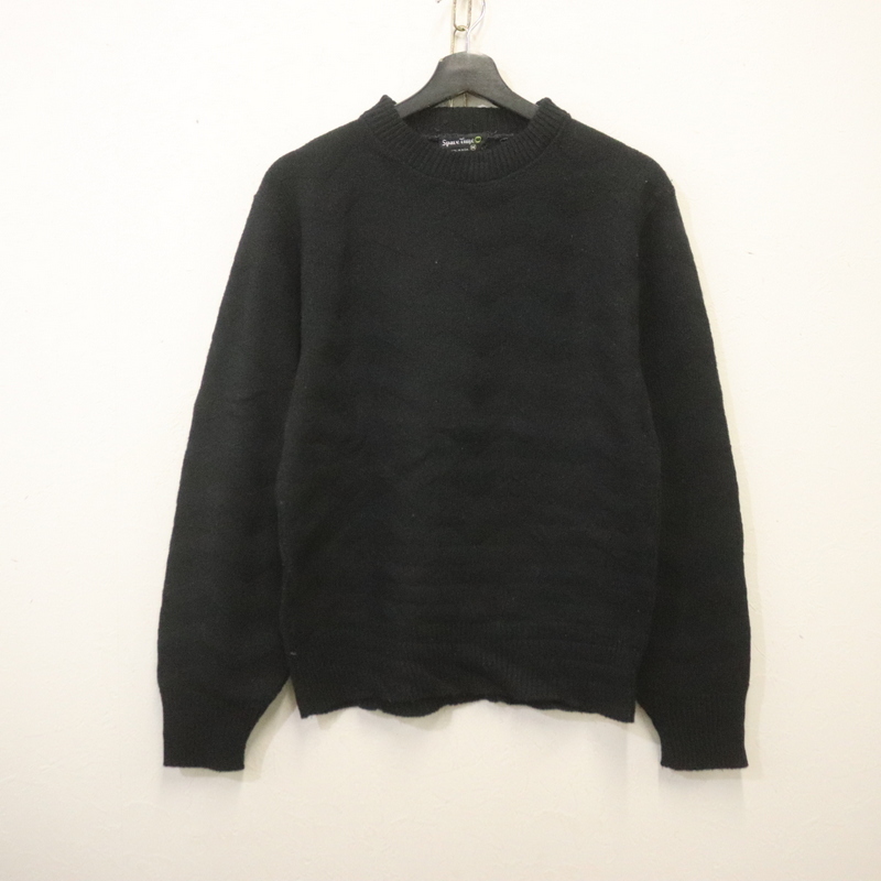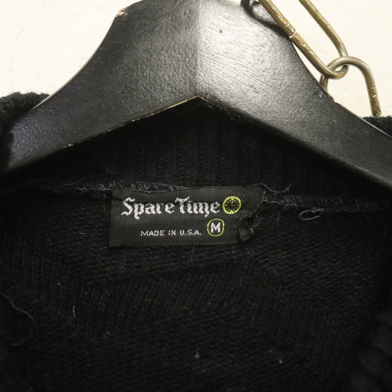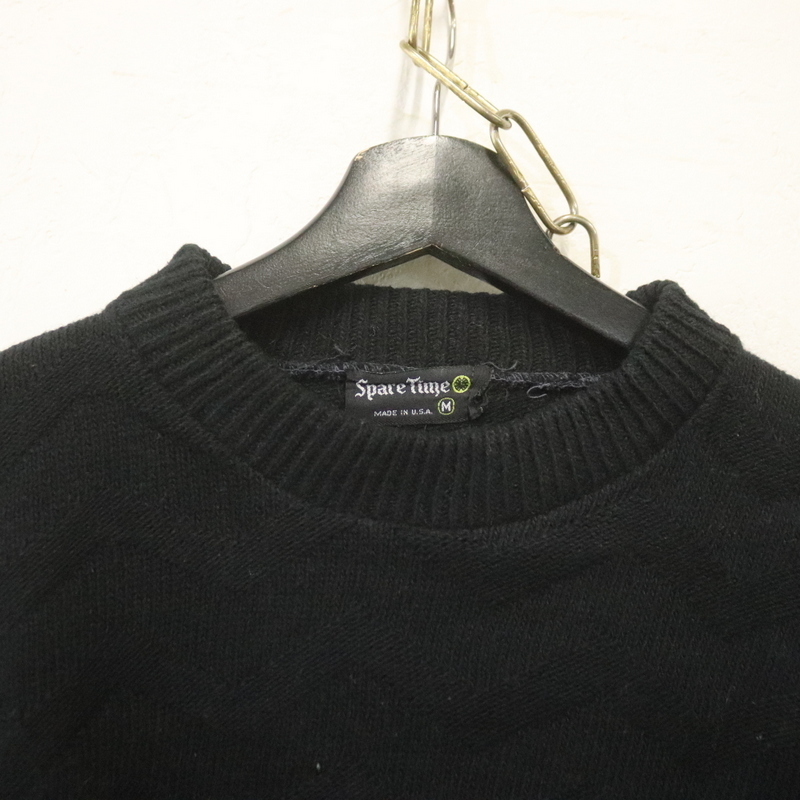 L74 70sビンテージ SPARETIME 長袖ウールニットセーター USA製■1970年代製 表記Mサイズ 黒 柄 ブラック アメカジ 古着 古着卸 ストリート