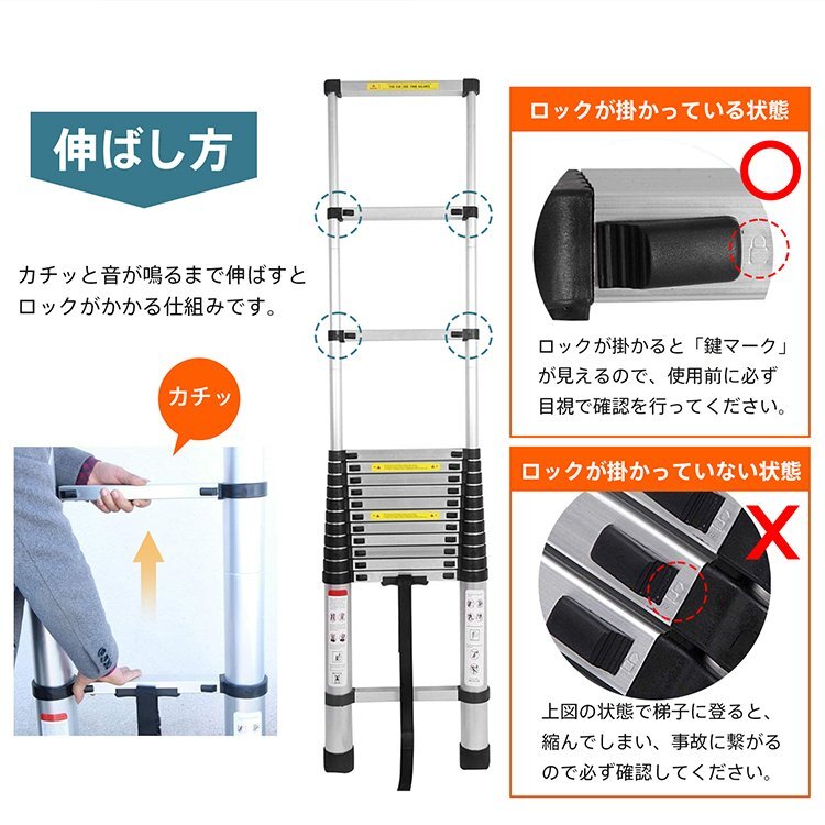 [はしご 伸縮はしご 5m アルミ 調節 調整 11段階 94cm 収納 持ち運び ハシゴ 梯子]