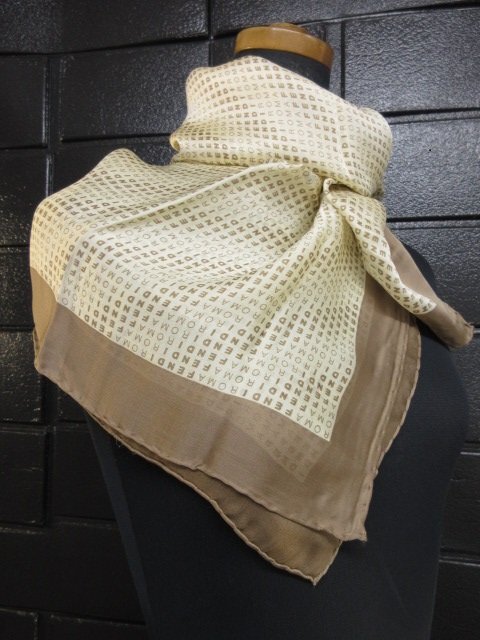 t1456 タグ付き未使用保管品 FENDI フェンディ スカーフ イタリア製 絹100% シルク ベージュxブラウン ロゴ