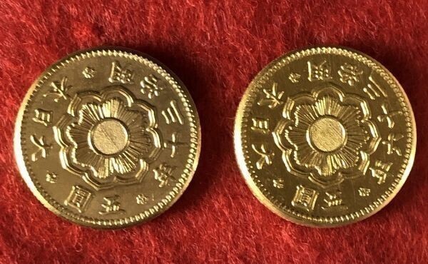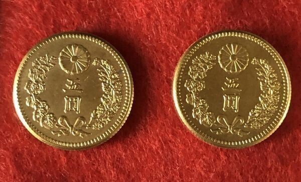 ◇ 新5円金貨 明治30年 明治36年 2枚 木箱入り