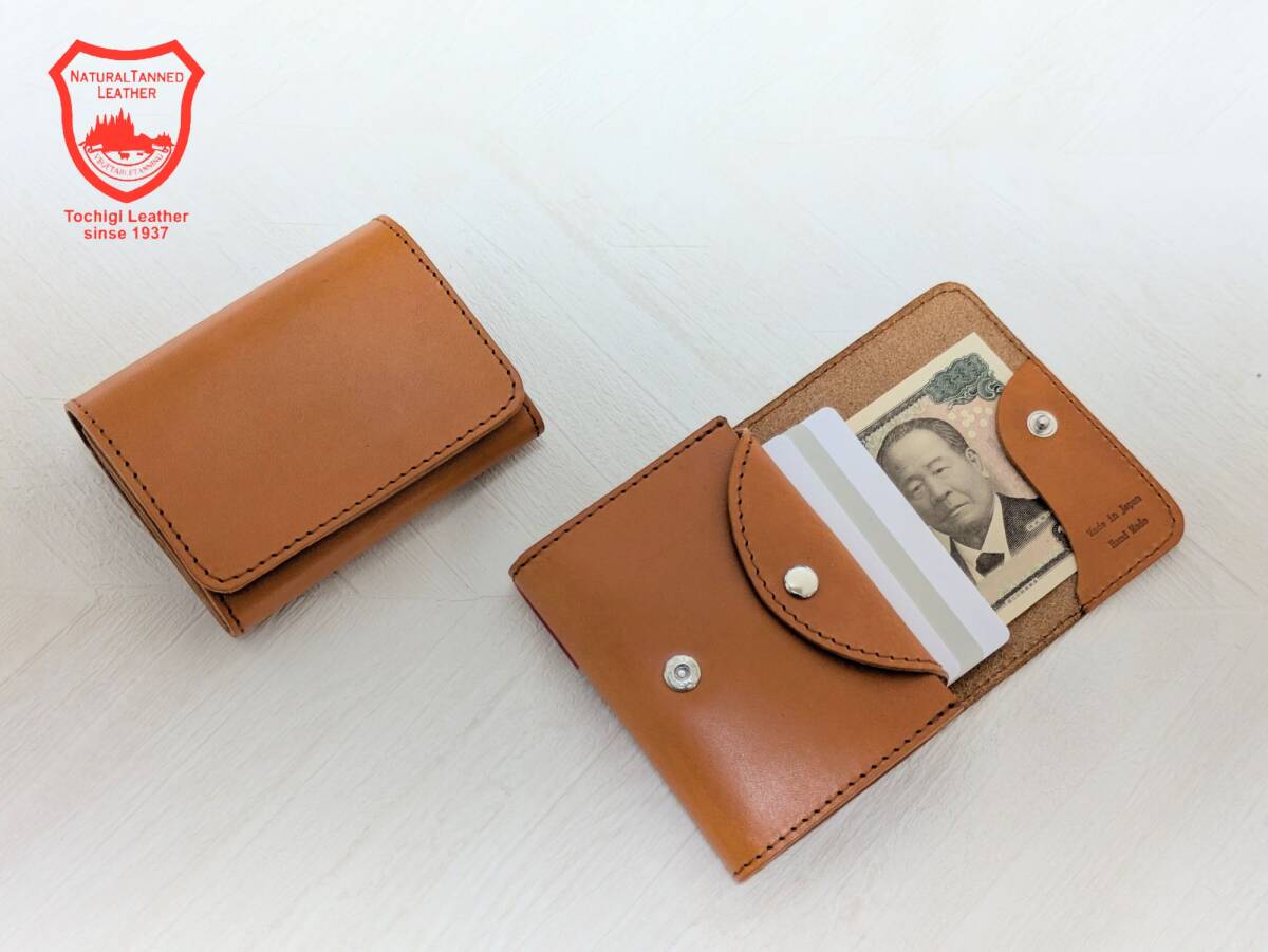 BOXなし 栃木レザー 二つ折り財布 コンパクト財布 ミニ財布 小さい財布 キャメル 本革 コンパクト財布 コンパクトウォレット